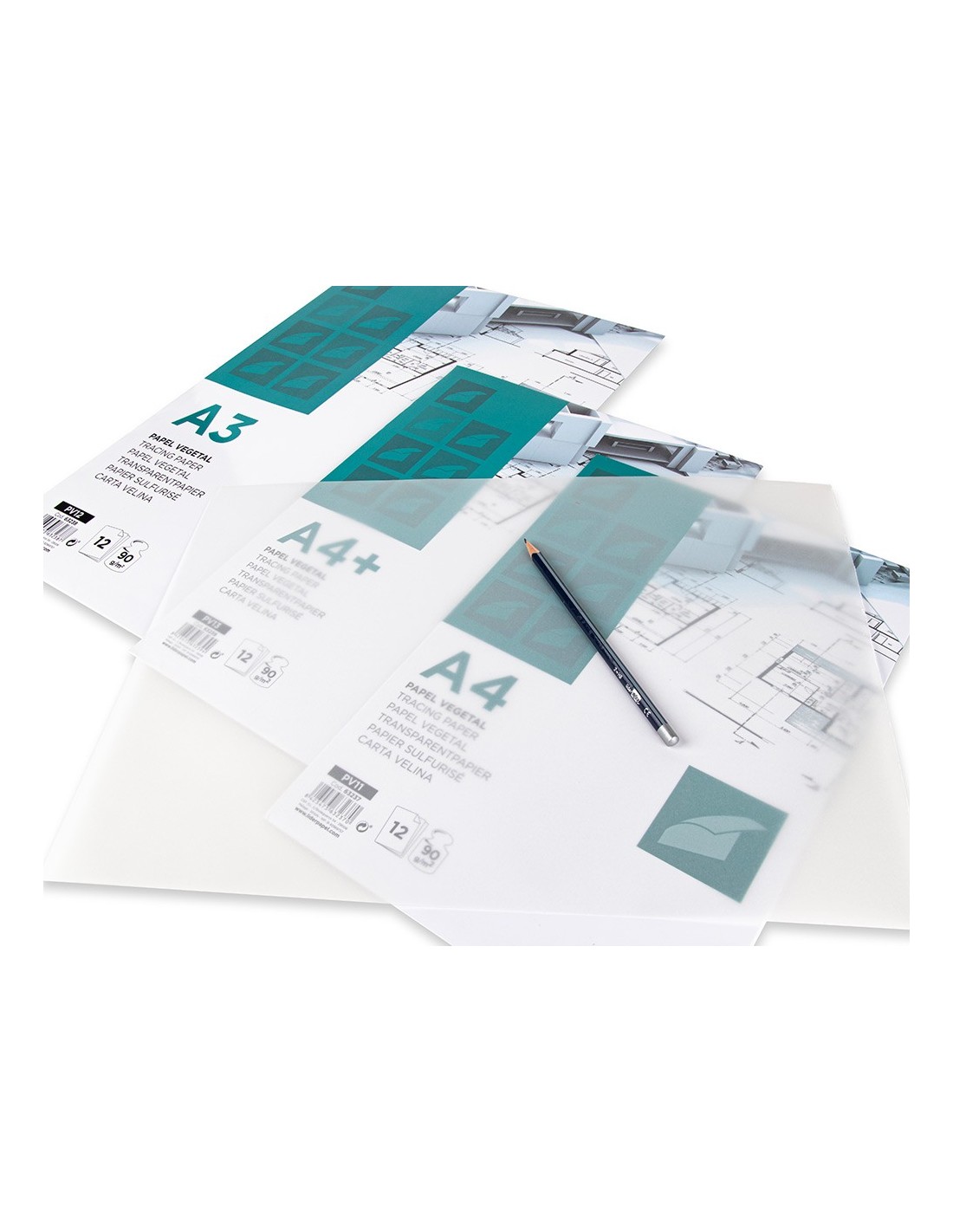 Papel vegetal de elevada transparencia y superficie regular y satinada. Papel ideal para calcar dibujo a lápiz o tinta. El sobre de 12 hojas.