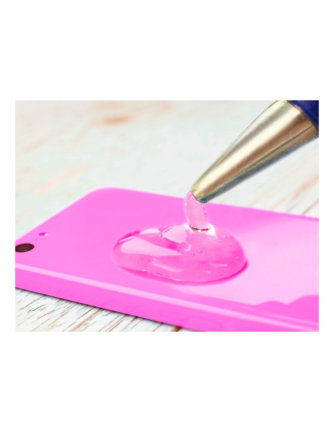 Barra sólida de cola termofusible. Una vez aplicada, endurece en aproximadamente un minuto, dejando pegada la superficie deseada. Presentación en blíster.
