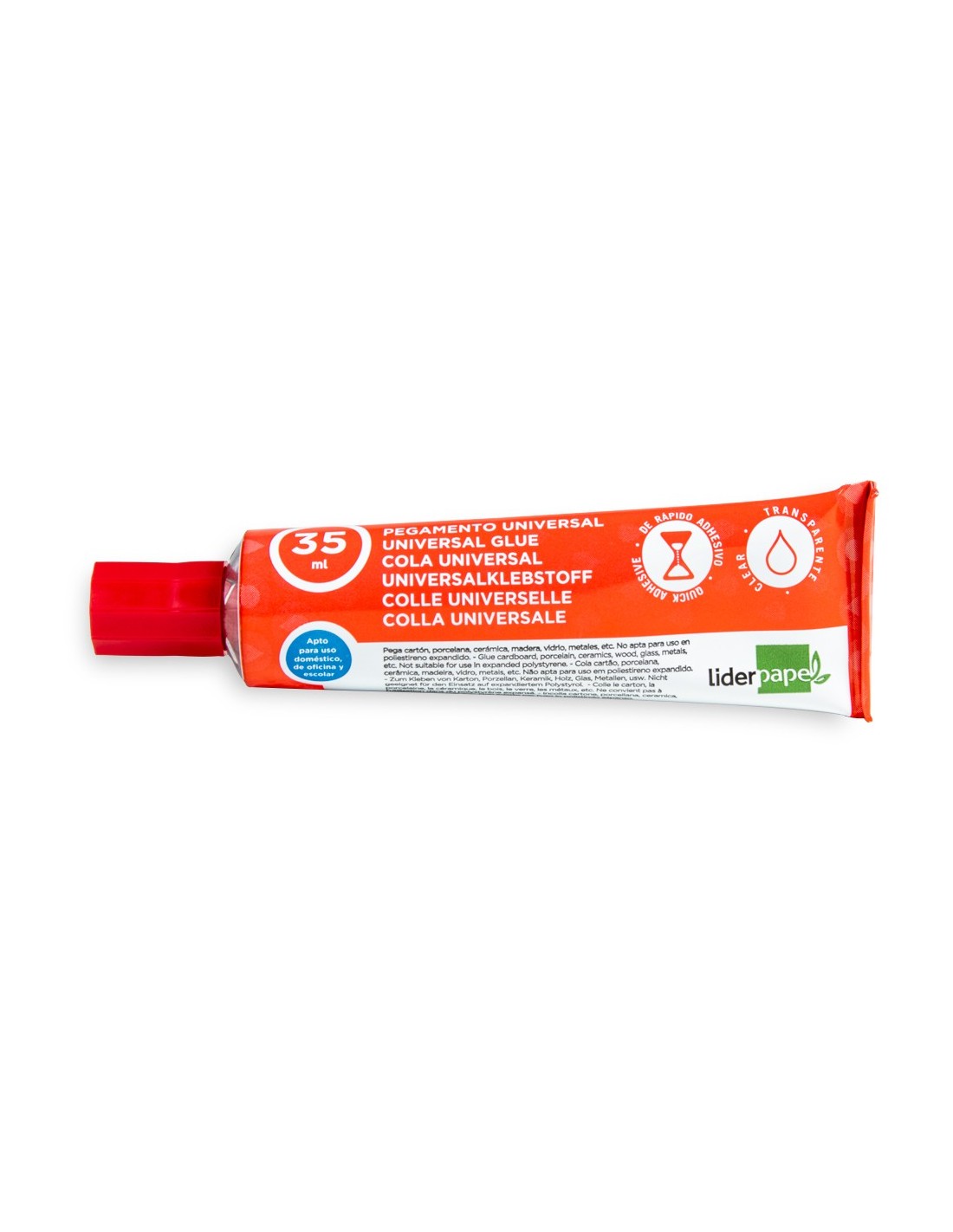 Pegamento transparente para uso universal. Pegado limpio y fácil de usar. Secado rápido. Tubo ergonómico. Ideal para manualidades, bricolaje y artesanía. Pega cartón, porcelana, cerámica, madera, vidrio, metales, etc. Apto para uso escolar, doméstico y de oficina.
