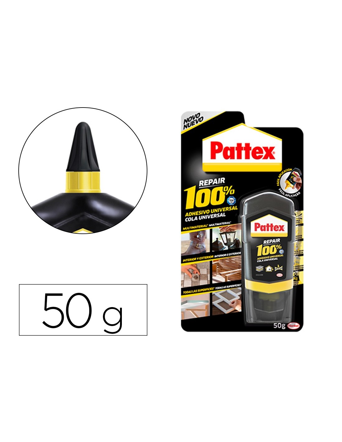 PEGAMENTO PATTEX UNIVERSAL INGREDIENTES ACTIVOS 100% SIN DISOLVENTES BOTELLA 50 G