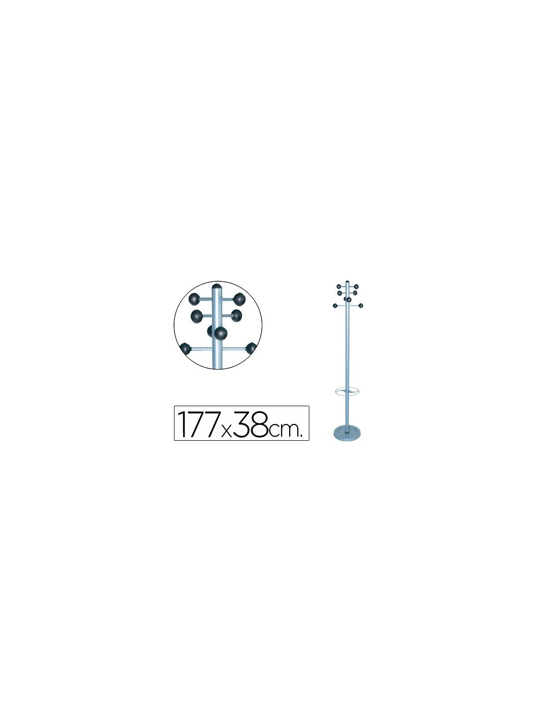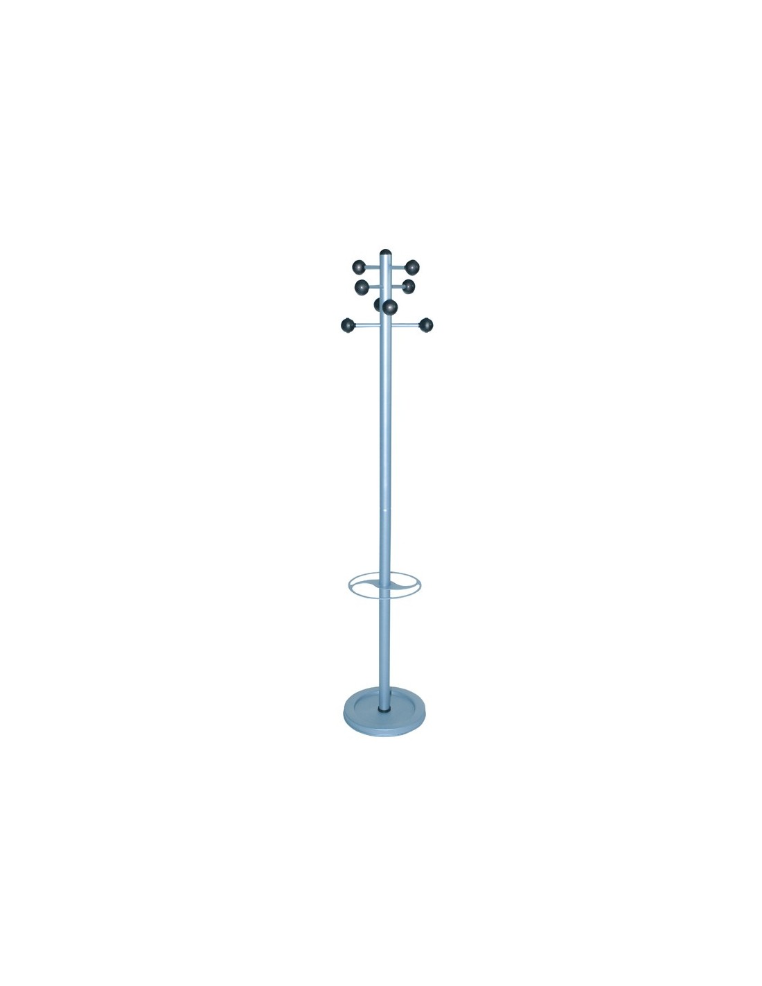 Perchero metálico, pintado, con 8 colgadores y paragüero en la parte inferior. Color negro y plata. Medidas: Ø 38 x 177 cm.