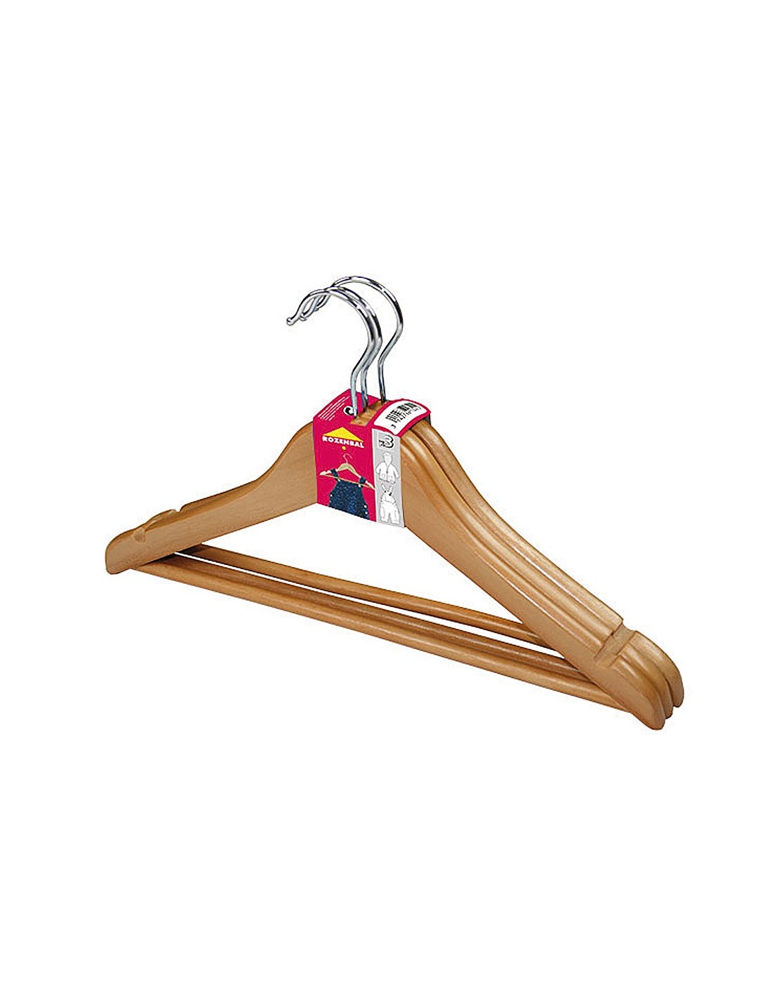 Perchas con cuerpo de madera y enganche metálico. Con hendiduras para que la ropa no resbale. De pequeño tamaño, están indicadas para uso de ropa infantil. Medidas: 203 x 355 x 37 mm. Pack de 3 unidades.