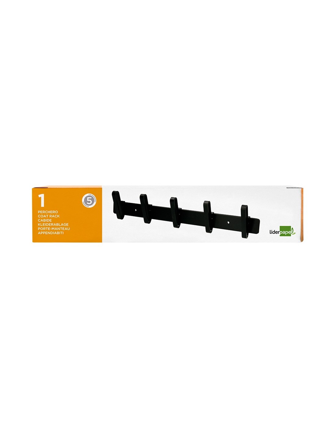 Perchero de pared con colgadores metálicos. Diseño moderno y fácil instalación. Medidas: 43 x 8,8 x 5,5 cm.