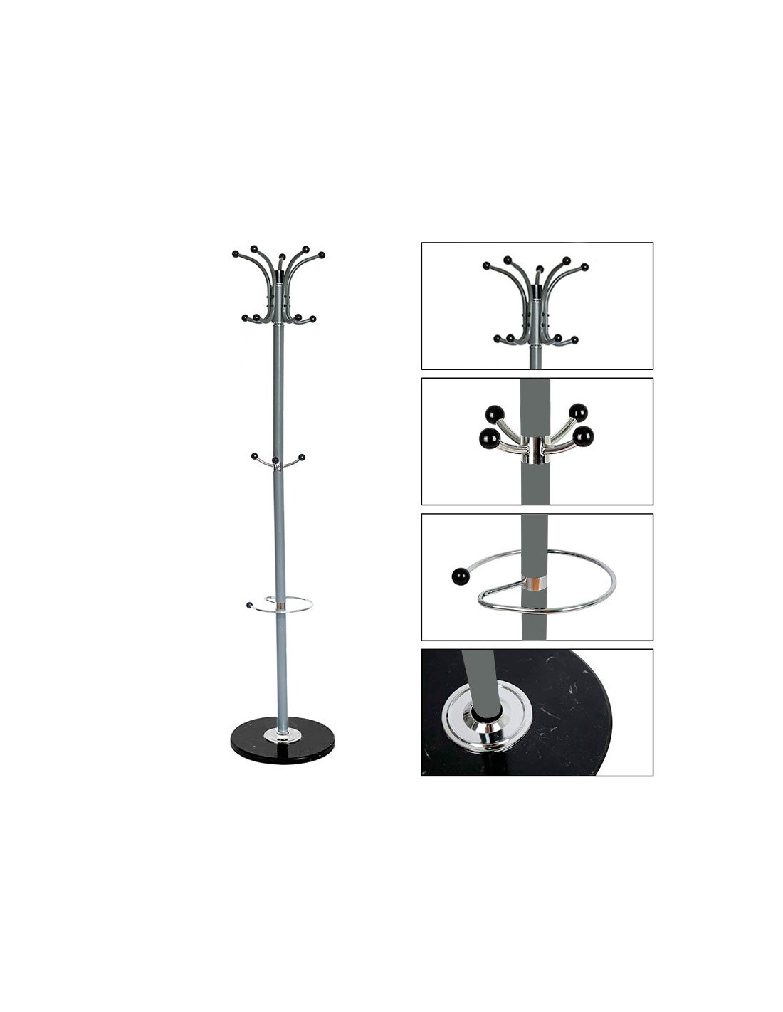 PERCHERO METALICO Q-CONNECT GRIS DE PIE 10 COLGADORES Y PARAGUERO 174X40CM