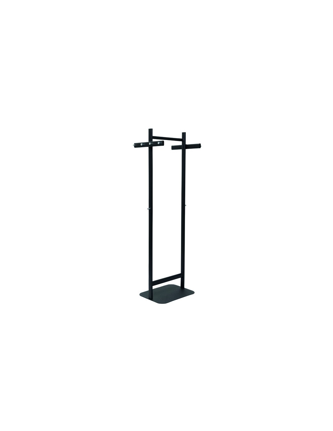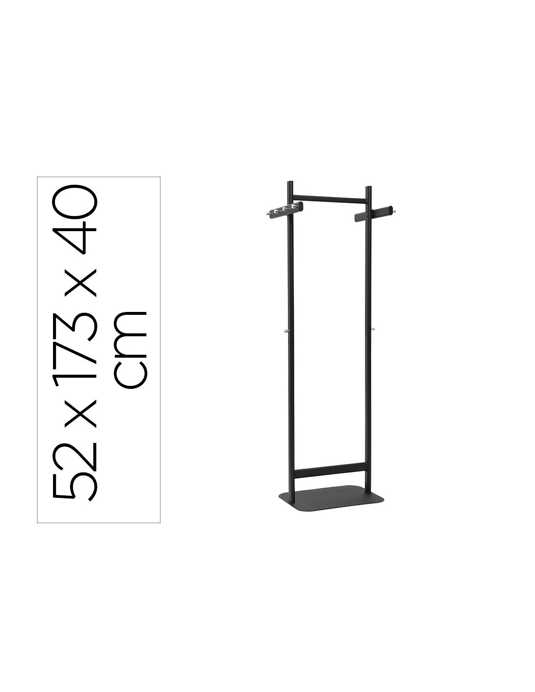 Perchero de pie compacto de alta calidad, resistente y de diseño elegante. Con mucho espacio de almacenamiento: 8 ganchos para colgar prendas y 2 ganchos adicionales en la columna. Certificado de seguridad GS. Construcción metálica muy robusta con gran placa de pie de acero pesado. Ideal para oficinas, salas de recepción, consultas y zonas de acceso público. Acabado profesional: más de 100 años de experiencia en el tratamiento de metales. Gancho de metal cromado firmemente atornillado que no se tambalea de Ø 2 cm. La gran placa base plana de acero garantiza una estabilidad perfecta y reduce el riesgo de tropiezos. Pie con protectores de fieltro para el suelo. Color negro RAL 9004. Montaje sencillo. Reciclable: desmontar y devolver al ciclo de materiales. Medidas: 52 x 180 x 40 cm. Peso 16 kg
