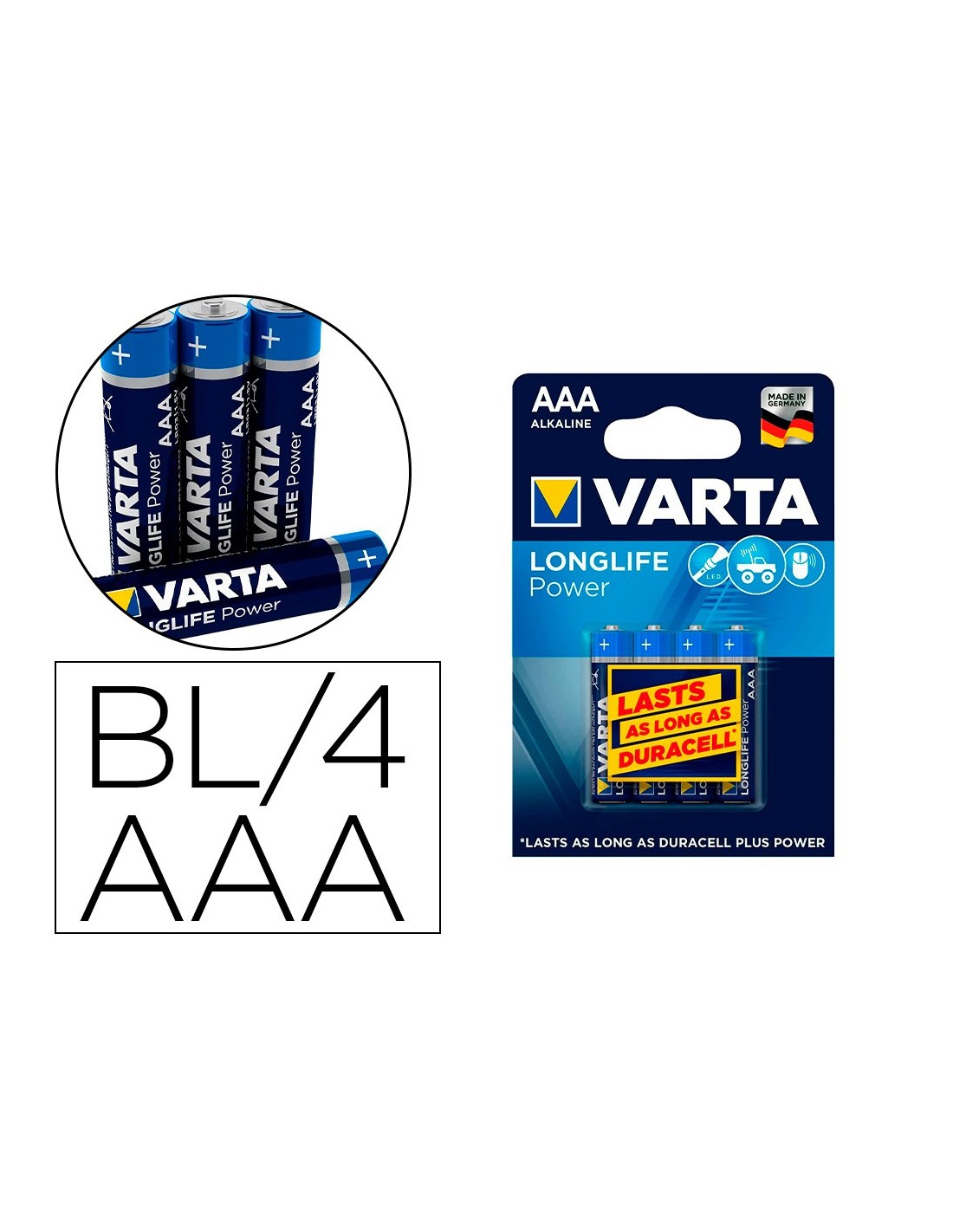 PILA VARTA ALCALINA LONGLIFE POWER AAA TIPO LR-03 4 UD.