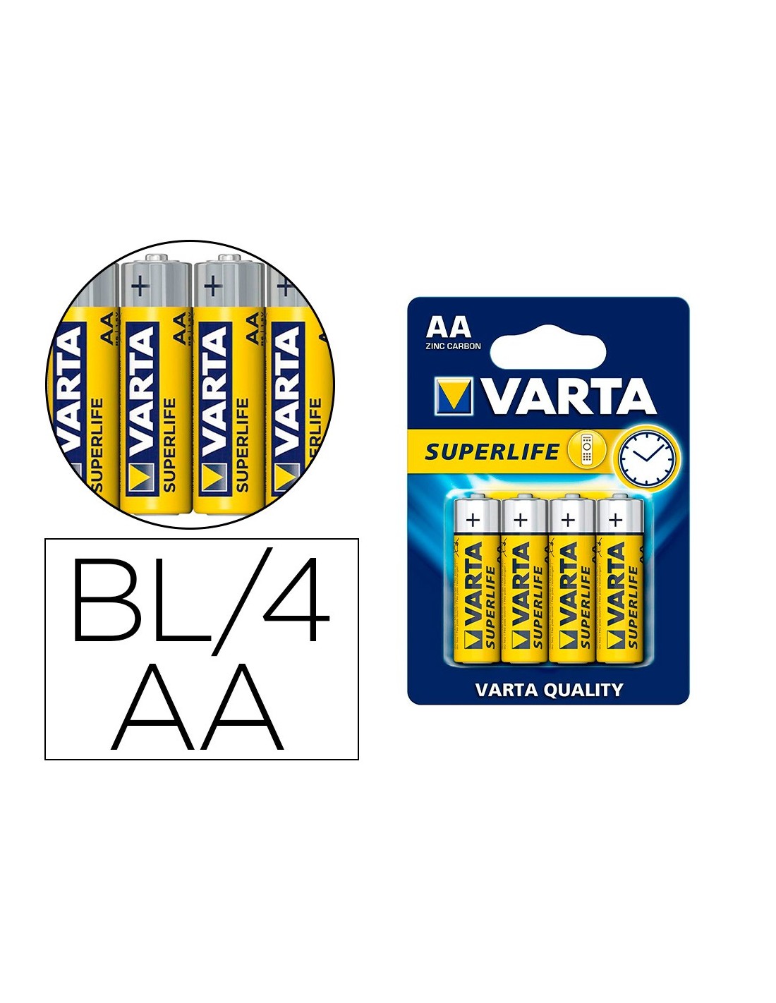 Pila salina. Fiable y económica. La gama de zinc-carbono Varta Superlife combina una excelente calidad con el ahorro. Ideal para los aparatos de bajo consumo, como relojes de pared, despertadores y mandos a distancia.
