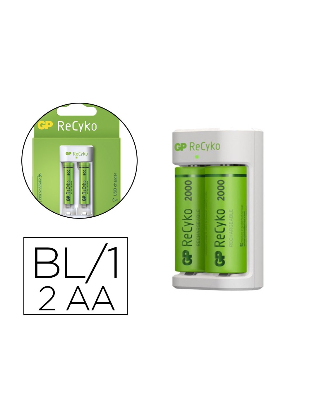 Cargador USB para pilas AA y AAA, incluye 2 pilas AA 2100 mAh. Este cargador GP contiene un indicador LED que permite comprobar si la carga de las pilas se ha completado. El tiempo de carga es de 3,5 horas en el caso de las pilas AAA y de 8 horas en el caso de las AA. El cargador tiene capacidadpara cargar 2 pilas simultáneamente y cuenta con 2 sistemas de protección para la carga. Las medidas de este cargador son 33x74x21 mm y su peso de 18 gr.