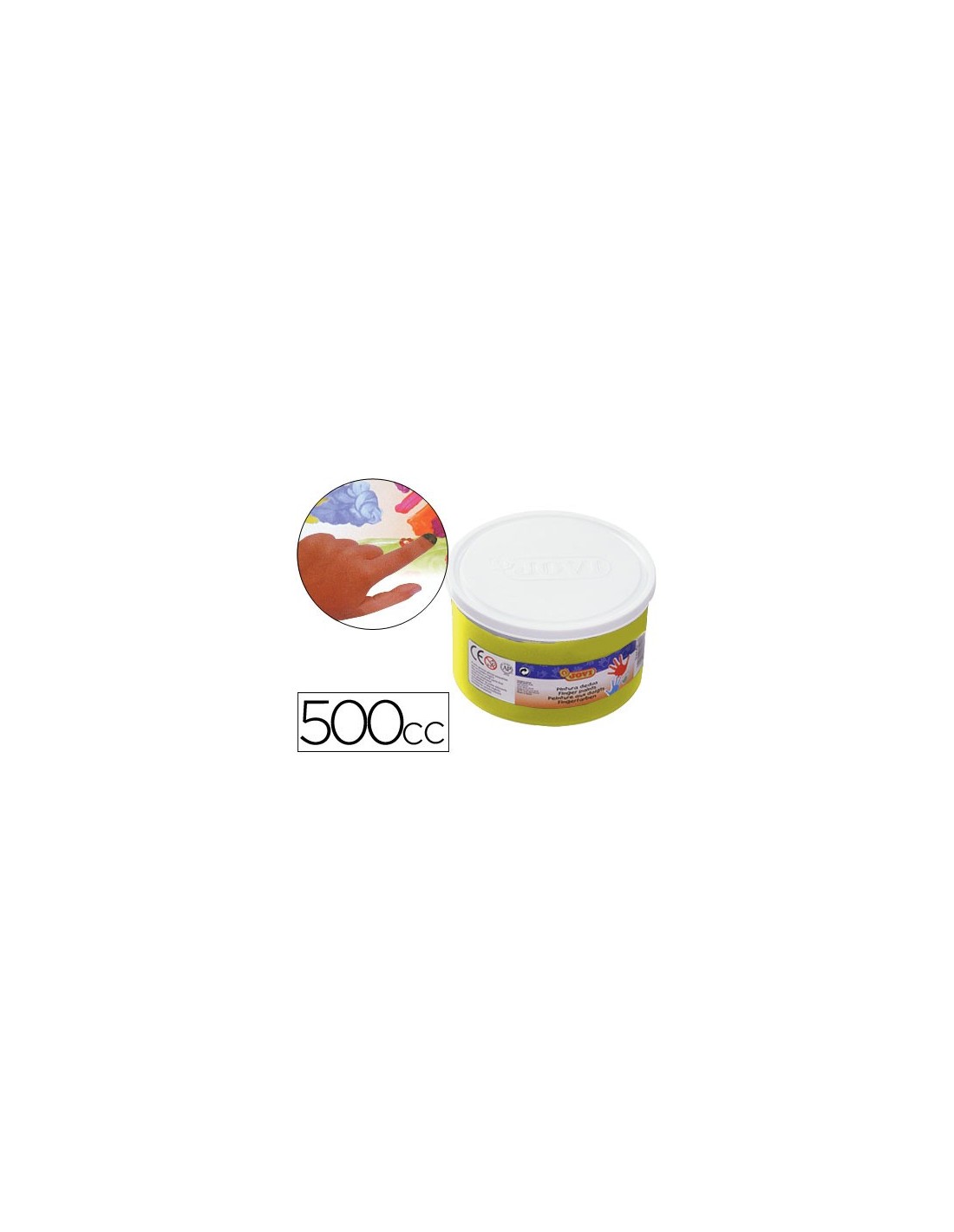Pintura opaca de secado rápido y color intenso. Se aplica directamente con los dedos sin necesidad de agua. Los colores se pueden mezclar entre sí.