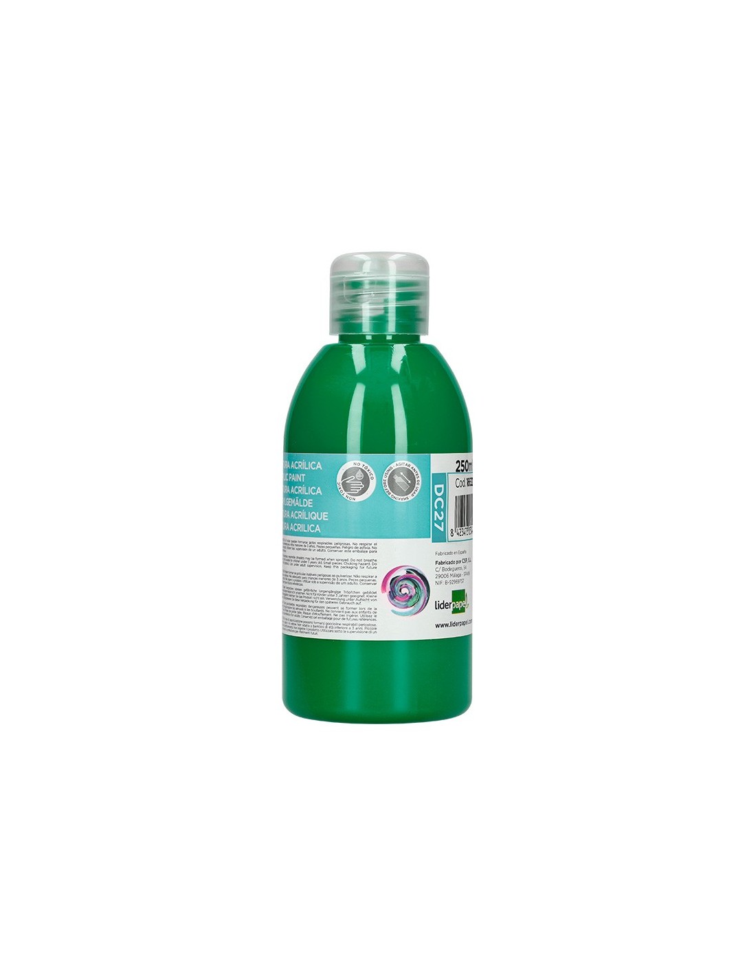 Pintura acrílica con base de agua. Colores vivos. Es perfecta para todo tipo de aplicaciones, como decoraciones de interiores, para pintar madera, porex, latón, cemento, cartón, cerámica, papel, yeso, tu imaginación es el límite, al ser multisuperficie se adapta perfectamente a una infinidad de materiales,fácil limpieza con jabón y agua. El bote de 250 ml. Más capacidad. Color verde oscuro.