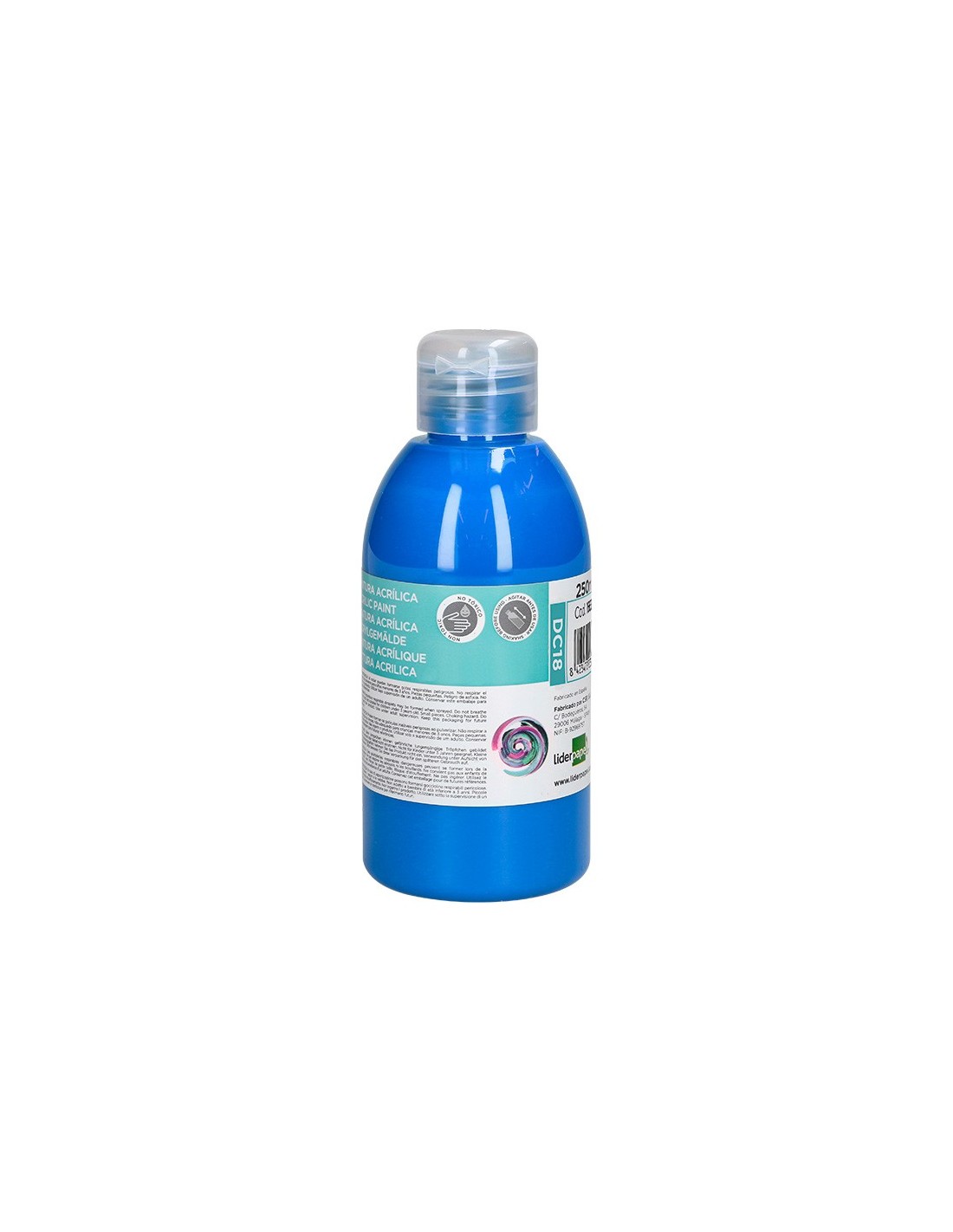 Pintura acrílica con base de agua. Colores vivos. Es perfecta para todo tipo de aplicaciones, como decoraciones de interiores, para pintar madera, porex, latón, cemento, cartón, cerámica, papel, yeso, tu imaginación es el límite, al ser multisuperficie se adapta perfectamente a una infinidad de materiales,fácil limpieza con jabón y agua. El bote de 250 ml. Más capacidad. Color cian.
