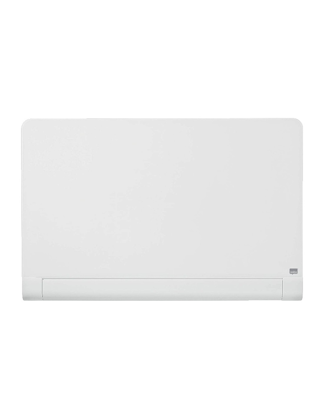 Pizarra Nobo Widescreen 45\" cristal blanco redondeado. Superficie de cristal templado adecuada para un uso frecuente debido a su magnífica legibilidad y máxima resistencia a manchas de tinta, marcas de rotulador, arañazos y abolladuras. Tres veces más fácil de limpiar. Apariencia elegante y moderna con esquinas redondeadas, soportes de sujeción invisibles y una discreta bandeja de larga longitud para rotuladores. Garantía de por vida. Con rotulador y juego de imanes extra fuertes para pizarras de cristal incluidos.