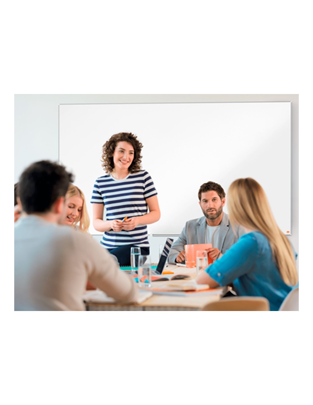 magnética Nano Clean , con un marco fino y elegante contemporá neo, ofrece una superficie de escritura más accesible y óptima. Una elegante bandeja para rotuladores de pizarra para guardar rotuladores y borradores. El sistema InvisaMount facilita la instalación y los soportes de sujeción están cuidadosamente ocultos tras el tablero. La superficie de la pizarra magnética Nano Clean ofrece mayor capacidad de borrado, para uso frecuente. Tamaño: 1200x900mm.