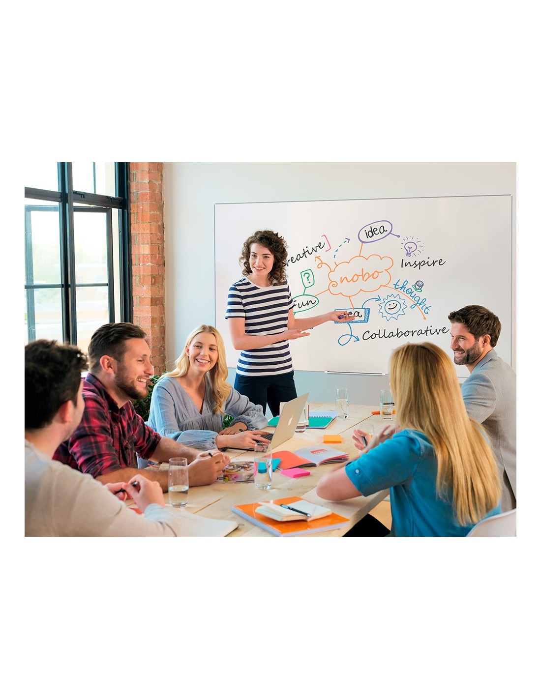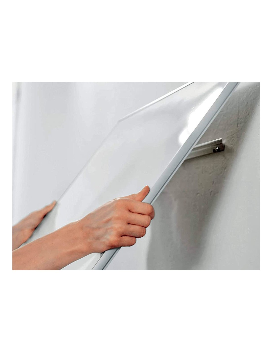 La pizarra magnética Nano Clean de formato panorámico con un marco fino y elegante contemporáneo ofrece una superficie de escritura más accesible y óptima. El sistema InvisaMount facilita la instalación con fijaciones ocultas detrás de la pizarra y se incluye una elegante bandeja para guardar rotuladores y borradores. La superficie ofrece mayor capacidad de borrado y durabilidad, para uso frecuente.