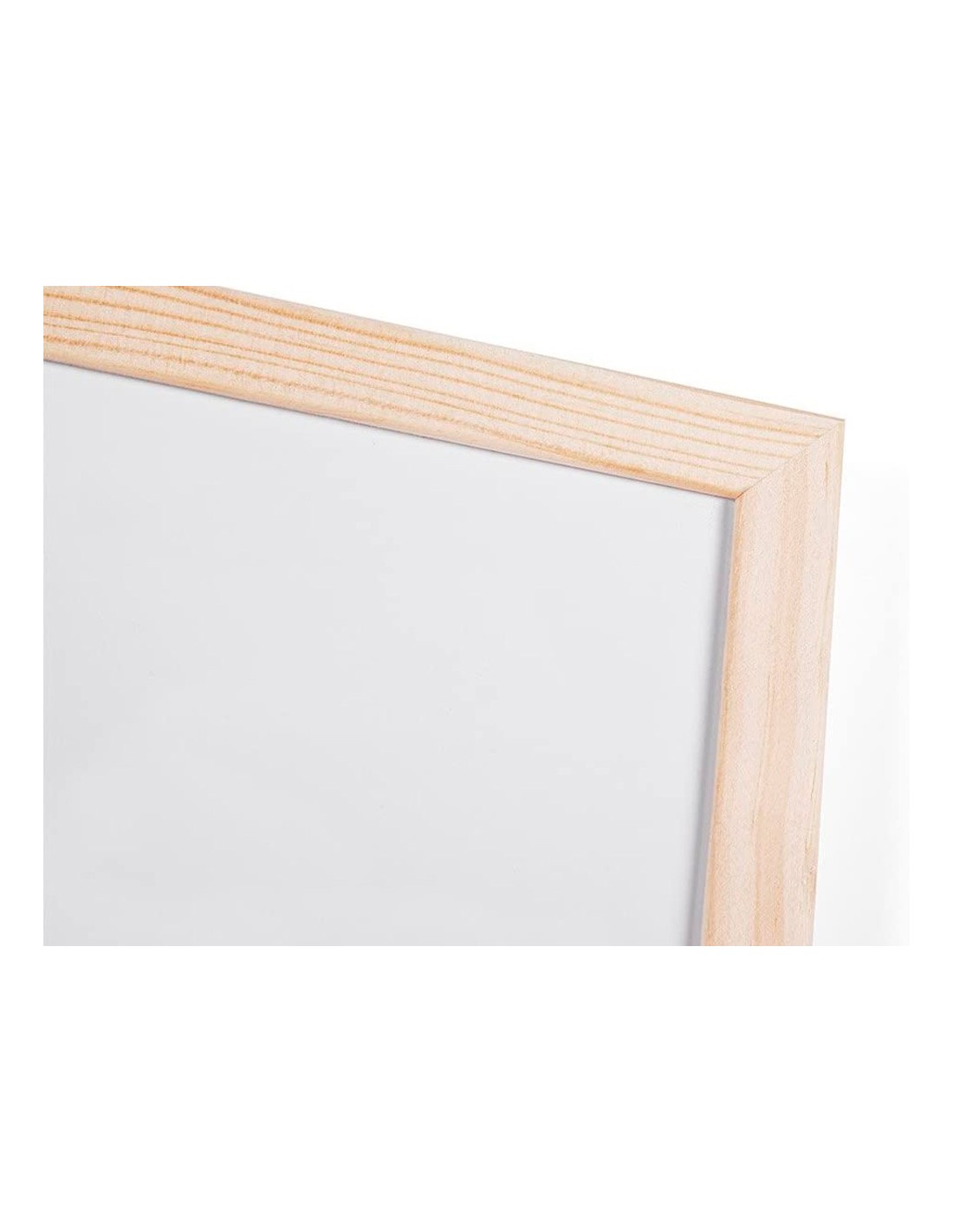 Pizarra de melamina, con una superficie lisa que permite una escritura suave y uniforme. Superficie lavable. Gran estabilidad. Utilizar solo rotuladores especiales para pizarra blanca. Con marco de madera de pino natural. Provista de accesorios de fijación a la pared.