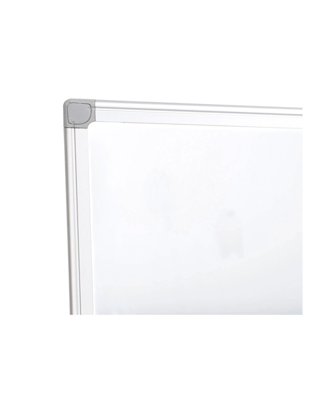 Superficie lisa. Con marco de aluminio. Utilizar sólo rotuladores especiales para pizarra blanca. Bandeja incluida. Adaptable a formato vertical. Provista de accesorios de fijación a la pared.