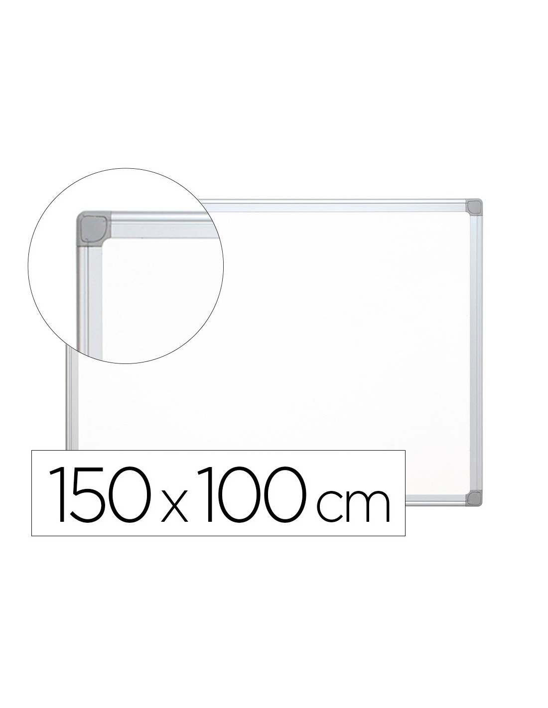 Superficie laminada blanca. Marco de aluminio plata mate y cantoneras redondeadas de plástico gris claro. Su acabado permite borrar con mayor facilidad sin que queden marcas. Provista de accesorios de fijación a la pared. Bandeja incluida. Utilizar solo rotuladores para pizarras blancas. Por su tamaño y características es ideal para centros de formación: academias, institutos, universidades, etc.