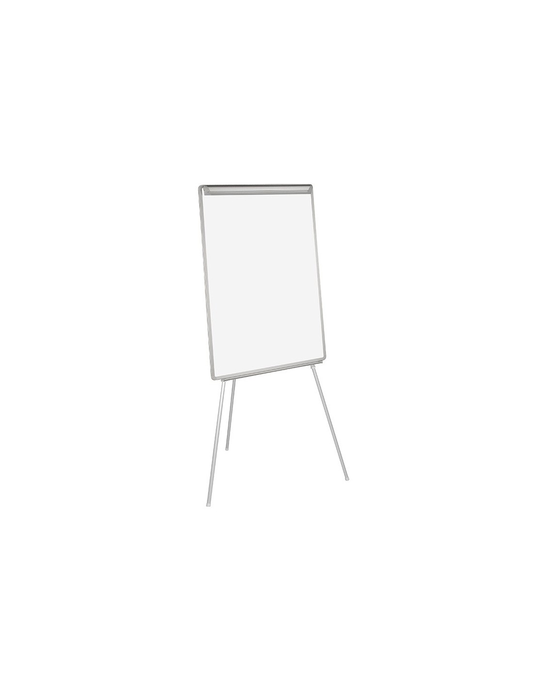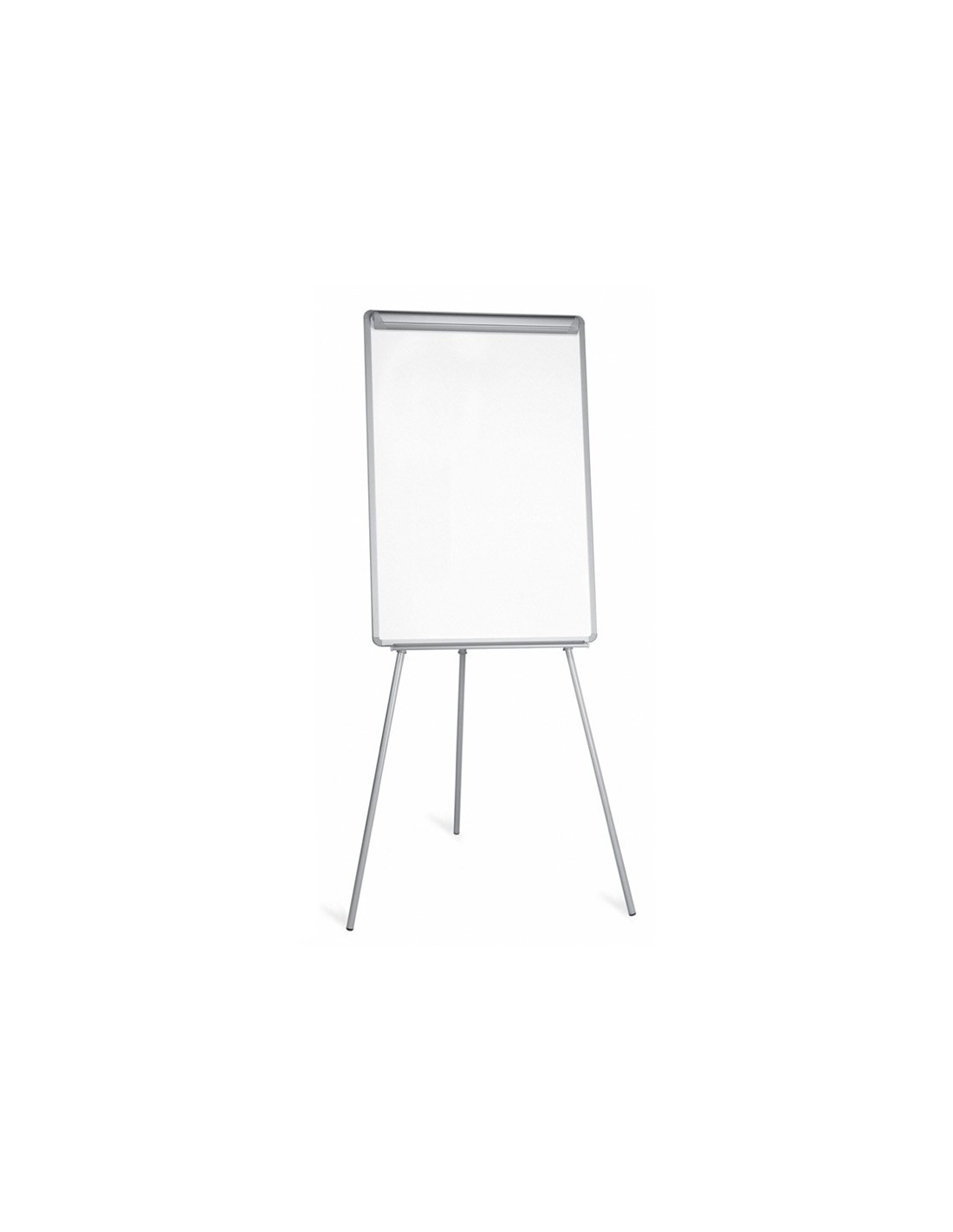 Pizarra trípode con marco y bandeja en plástico gris. Superficie disponible en acabado laminado no magnético o lacado magnético, ambos aptos para escritura con rotuladores de borrado en seco. También aptas para todo tipo de blocs de papel gracias a su pinza superior. Pies telescópicos con altura regulable hasta 195 cm. Con bandeja inferior para rotuladores y accesorios. Medidas del tablero: 70 x 100 cm.