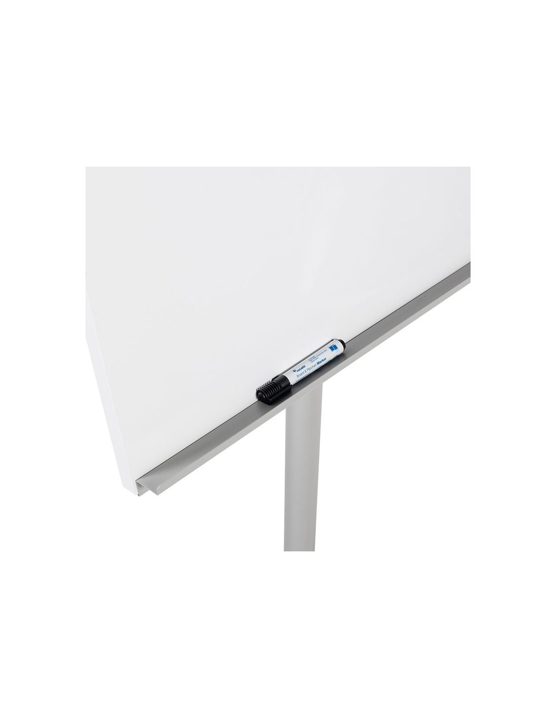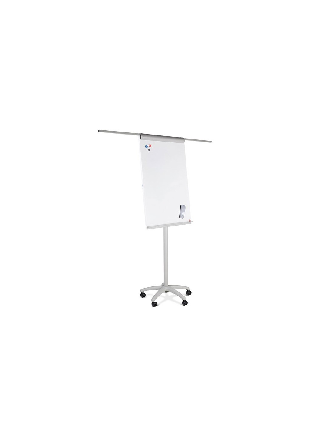 Pizarra de conferencias con base de ruedas. Superficie de escritura metálica y magnética ideal para escribir con rotuladores de borrado en seco o bloc de papel. Admite bloc de papel universal. Embellecedor de diseño en la parte superior para esconder los pomos de sujeción del bloc. Incluye 2 brazos laterales para mostrar 3 hojas al mismo tiempo. Bandeja para rotuladores. No regulable en altura. Fácil montaje. Medidas del tablero: 68 x 104 cm.