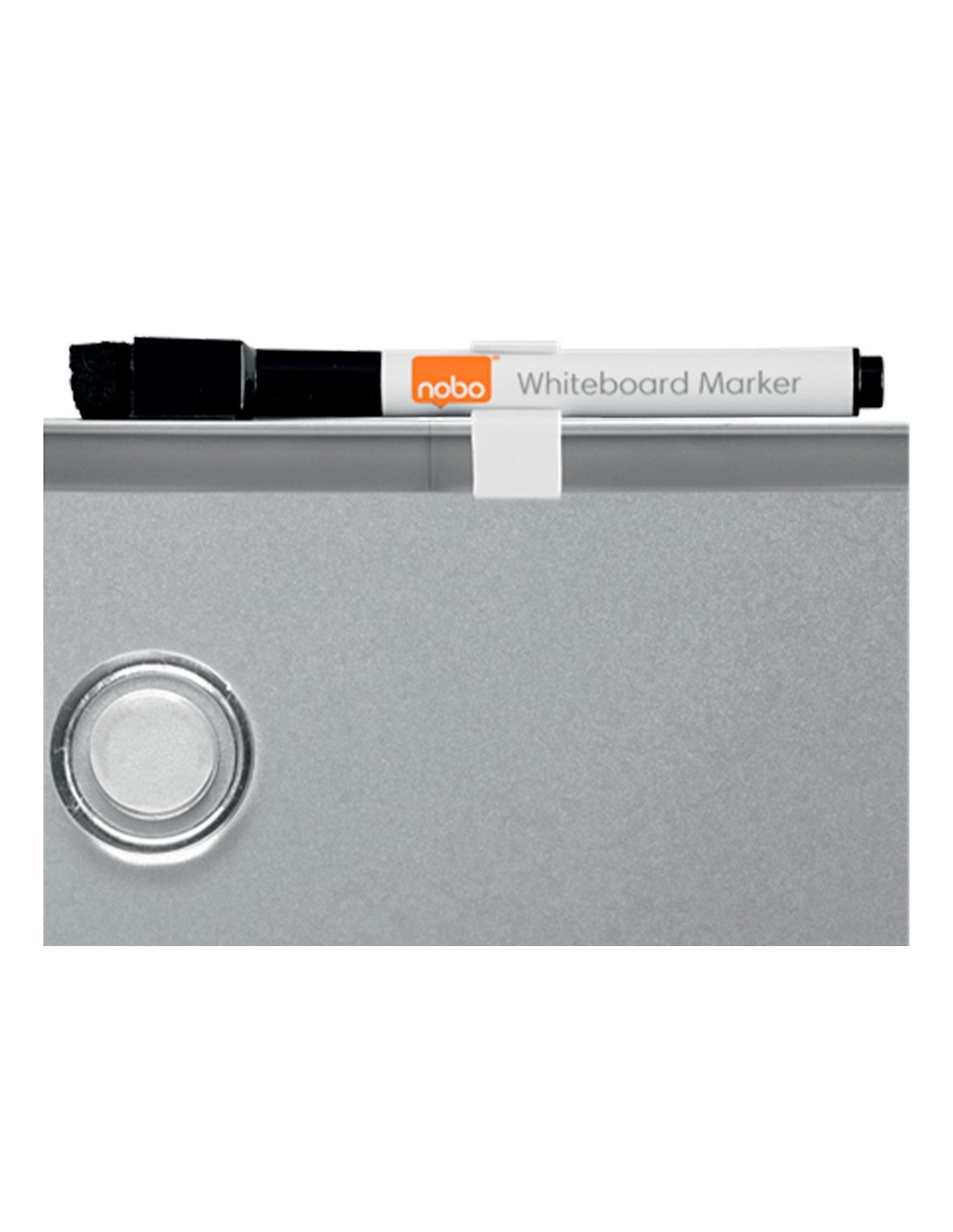 Minipizarra magnética con marco estilizado plateado. Se puede montar en la pared con almohadillas adhesivas e imanes para superficies metálicas. Con un clip portarrotulador para pizarra integrado. Se completa con un rotulador con borrador, 2 imanes para pizarra blanca y almohadillas adhesivas e imanes de montaje.
