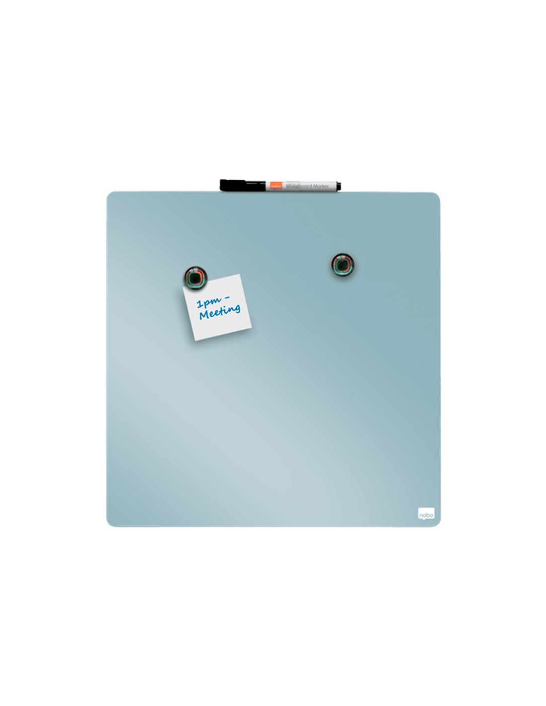Minipizarra magnética de borrado en seco sin marco de 9 mm de grosor. Se puede montar en la pared con almohadillas adhesivas o en superficies metálicas como frigoríficos con imanes. Con un clip portarrotulador. Se suministra con un rotulador para pizarra, 2 imanes para pizarra y almohadillas e imanes de montaje. Medidas: 36 x 36 cm.
