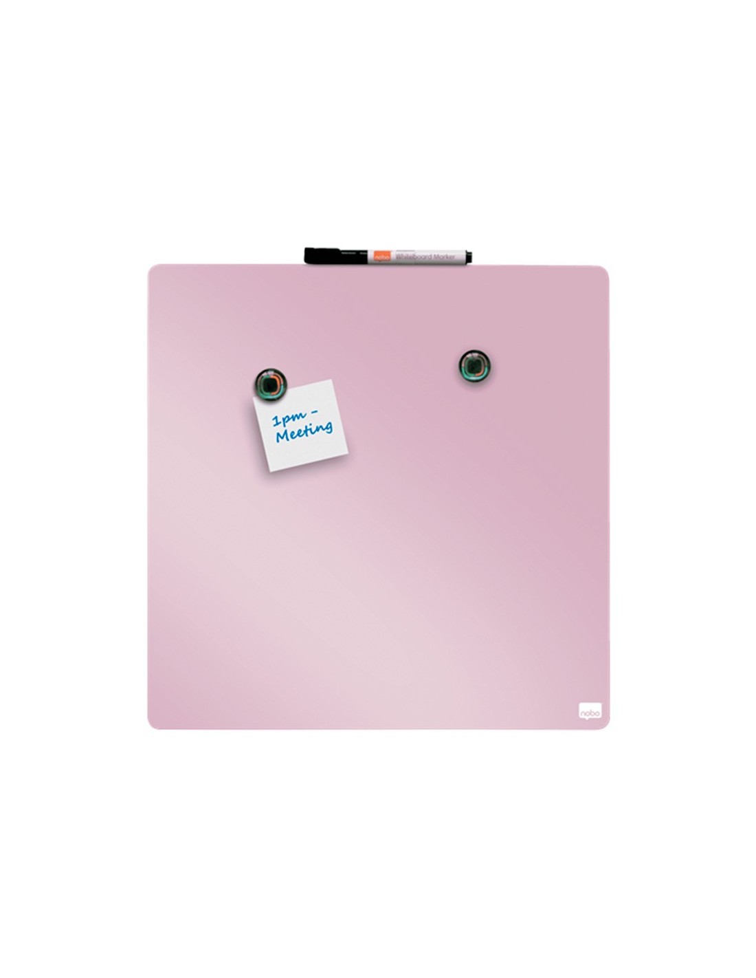 Minipizarra magnética de borrado en seco sin marco de 9 mm de grosor. Se puede montar en la pared con almohadillas adhesivas o en superficies metálicas como frigoríficos con imanes. Con un clip portarrotulador. Se suministra con un rotulador para pizarra, 2 imanes para pizarra y almohadillas e imanes de montaje. Medidas: 36 x 36 cm.