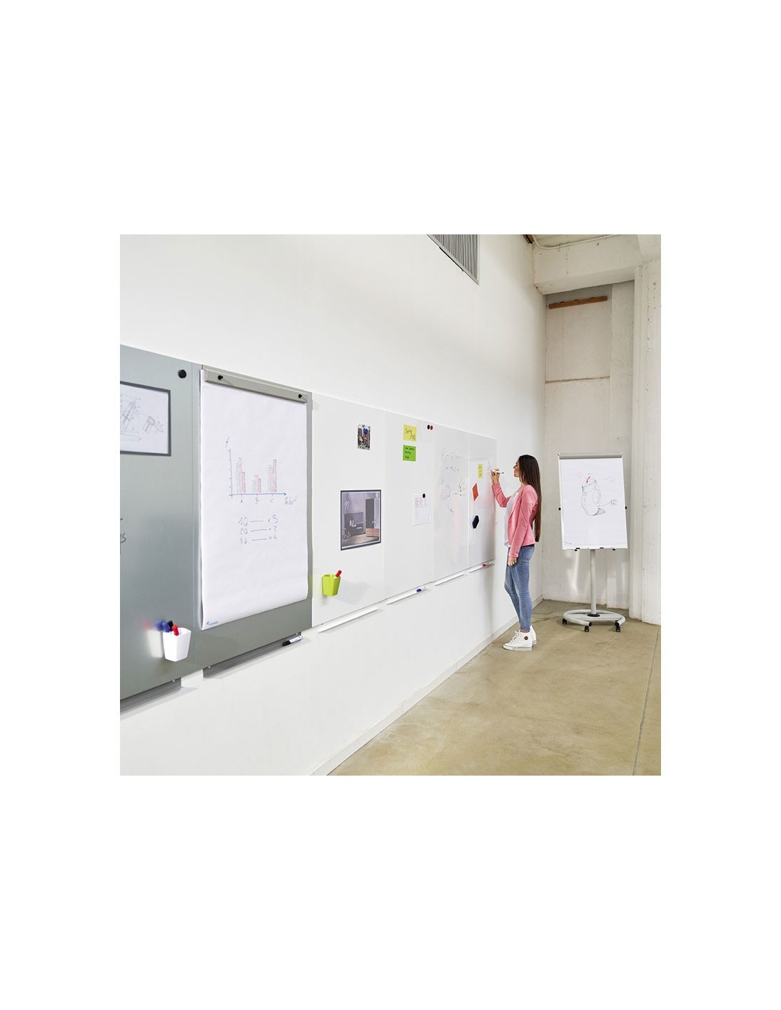 Pizarra blanca lacada magnética con protector adicional PET en la superficie para una escritura y borrado perfectos. La Skinwhiteboard es una pizarra modular y multifuncional que gracias a su nuevo diseño sin marcos y confijación patentada a pared, permite crear una superficie de escritura tan grande como se desee simplemente uniendo módulos entre si. Se puede inst lar tanto en vertical como en horizontal haciendo posibles infinitas combinaciones, desde una unidad hasta cubrir toda una pared, creciendo según sus necesidades. Compatibles con rotuladores de pizarra blanca.