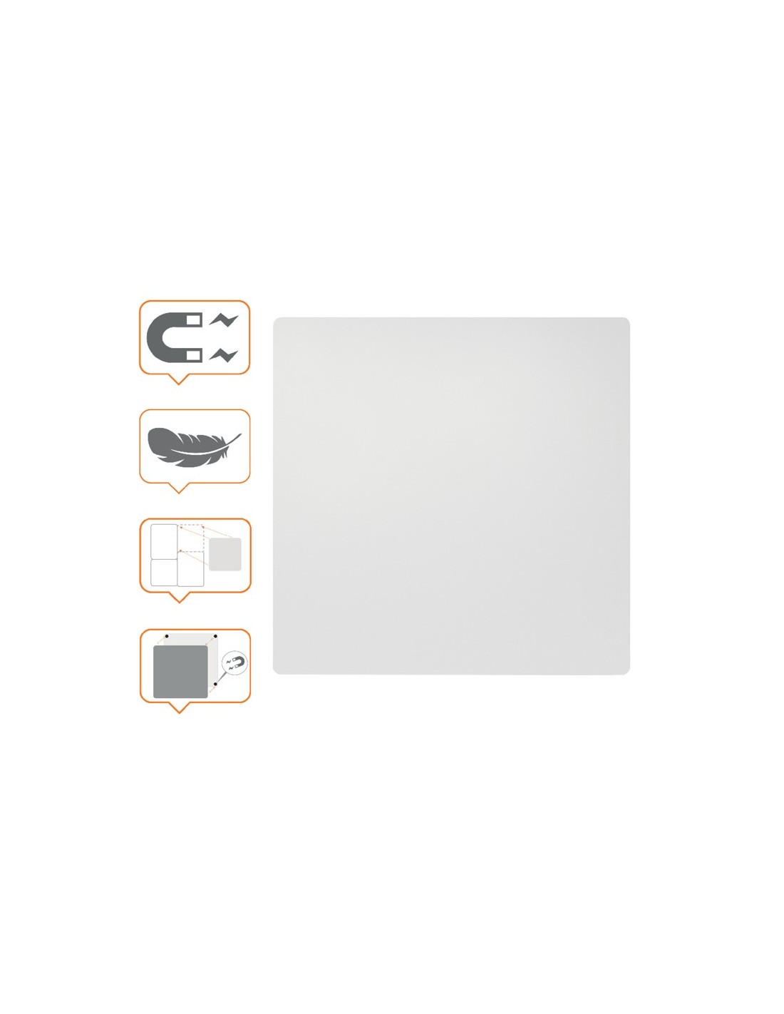 Esta elegante pizarra magnética sin marco es la herramienta de colaboración ideal para cualquier entorno de oficina. Su diseño modular te permite crear y ampliar tu espacio de escritura para adaptarlo a tus necesidades sinlímites. El innovador sistema de montaje magnético permite retirar fácilm ente las pizarras ligeras para utilizarlas en una superficie plana y volver a colocarlas en la pared en cualquier momento, lo que ofrece la máxima flexibilidad. Pizarra magnética de acero. Medidas: 450x450 mm.