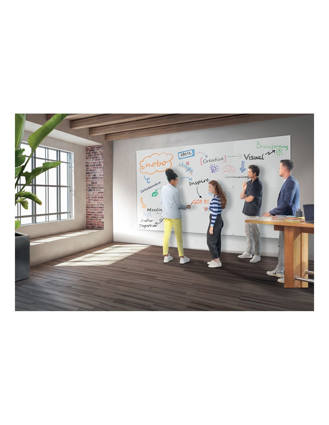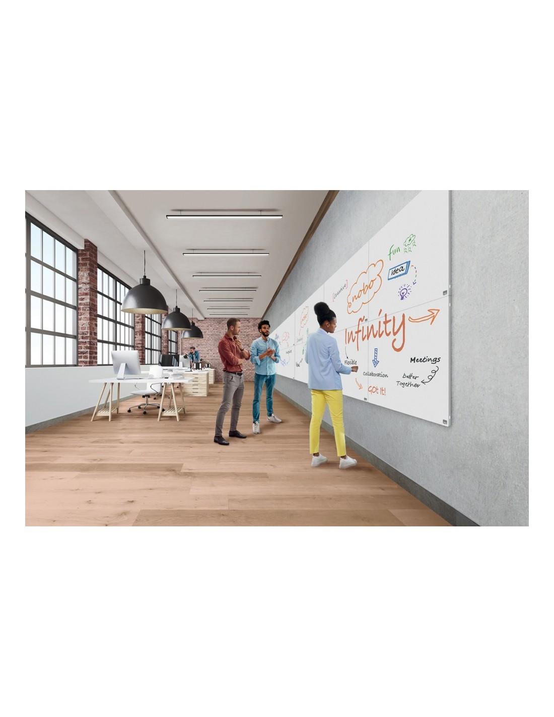 Esta pizarra magnética contemporánea sin marco es la solución definitiva para ideas ilimitadas. Amplía la superficie de escritura para adaptarla al espacio de tu pared añadiendo pizarras Infinity adicionales según sea necesario, creando una pared de pizarra sin juntas. La pizarra montada en la pared, es ideal para actividades de colaboración, como lluvias de ideas y planificación, en cualquier entorno de trabajo. Fácil de instalar, el sencillo sistema de montaje magnético permite que los tableros sin marco encajen a la perfección en orientación vertical u horizontal. Los tableros de ac