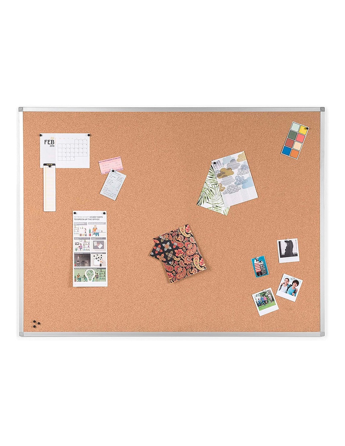 Excelente soporte para desplegar cualquier información. Paneles fabricados con corcho de la más alta calidad. Con marco de aluminio. Estos paneles tienen buena resistencia a la humedad y un acabado que garantiza una buena sujeción. Provisto de accesorios de fijación a la pared. 5 mm de grosor del corcho.