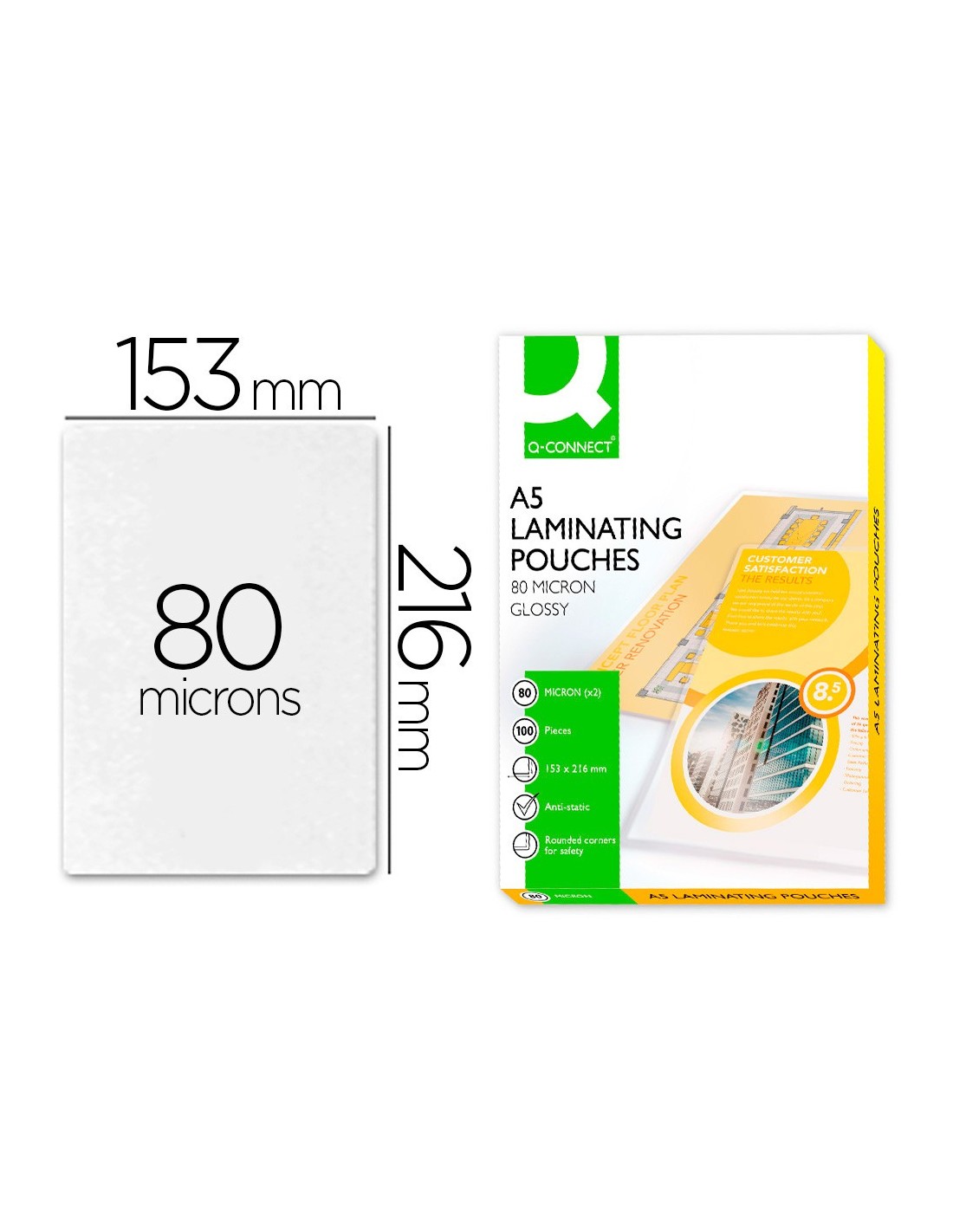 BOLSA DE PLASTIFICAR Q-CONNECT 153 X 216 MM 80MC DIN A5 CAJA DE 100