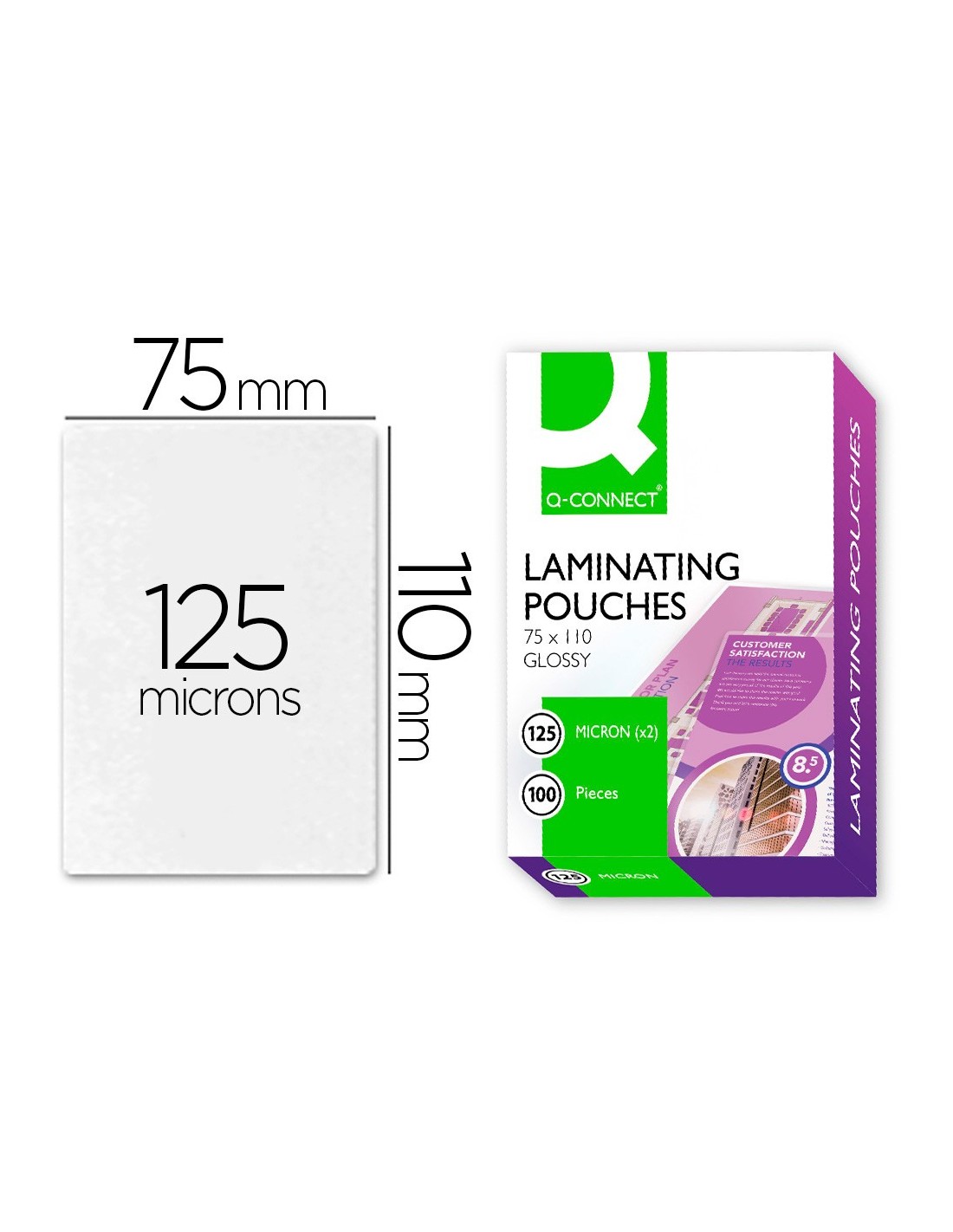 BOLSA PLASTIFICAR Q-CON.-110 X 75 MM 125 MC IDENTIDAD 100UD**19466