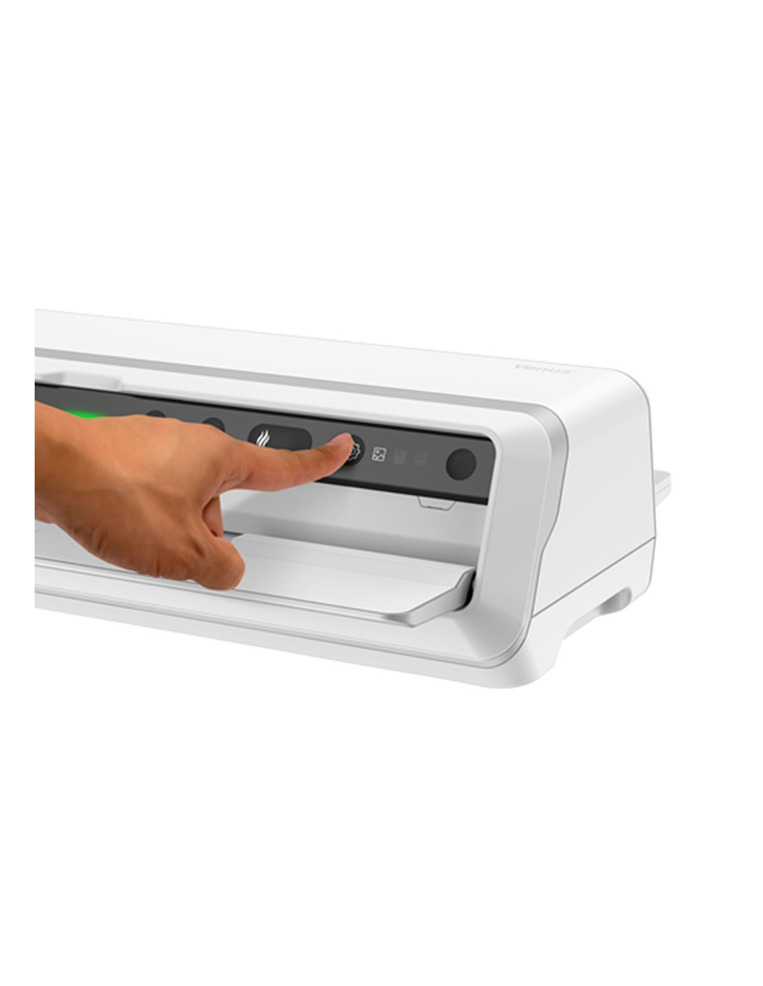 Plastificadora de uso intensivo de 6 rodillos apta para fundas hasta 250 micras y formatos hasta DIN A3 o inferiores (hasta 320 mm). Sistema de calentamiento instantáneo. Lista para ser usada en tan solo 30-60 segundos. Sistema de detección automática del grosor de funda, no es necesario seleccionar el grosor a utilizar. Sensor avanzado de detección de atascos y mecanismo de liberación en caso de detectar un posible atasco. Ultrarrápida, con una velocidad de 218 cm/minuto (plastifica 1 hoja DIN A4 de 80 micras en unos 10 segundos). Permite ajustes de +/- velocidad para un acabado profesional. Sensor de indicador de limpieza. Medidas: 525 x 135 x 214 mm. Peso: 6,5 kg.