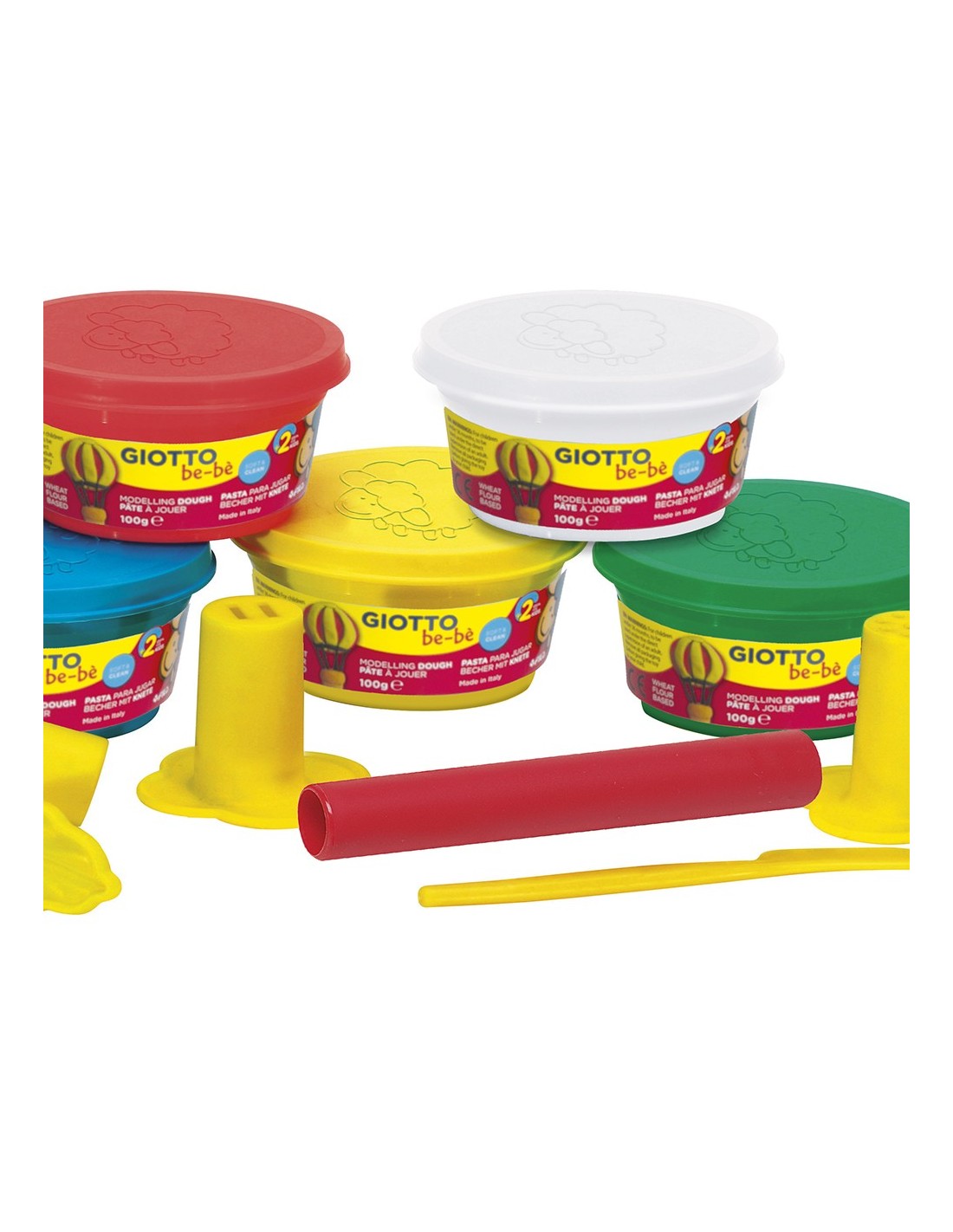 Pasta fabricada a base de ingredientes naturales (contiene harina de trigo) para jugar con total tranquilidad. Ideal para desarrollar la destreza manual de los más pequeños. Segura y dermatológicamente testada. No mancha ni ensucia. Contenido del cubo: 5 botes de pasta para jugar de 100 g (amarillo, azul, blanco, magenta y verde), 1 espátula, 1 rodillo, 1 miniextrusor con varias formas y una bolsa para guardar el producto después de su uso.