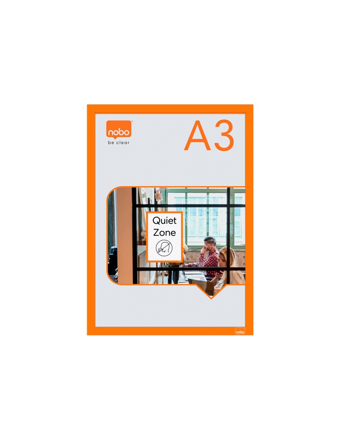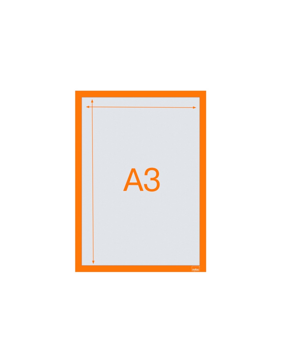Marco magnético autoadhesivo para la exposición segura de carteles, señales e información. El marco cuenta con una banda magnética en la parte inferior del marco que permite cambiar el contenido de forma rápida y sencilla y mantener las páginas seguras. Este marco magnético se fija firmemente a superficies planas en formato vertical u horizontal gracias a su base autoadhesiva, y la tapa mate transparente ayuda a proteger el contenido que hay debajo y se puede limpiar con un paño. Área de exposición A3. Pack de 2 marcos informativos de color naranja.