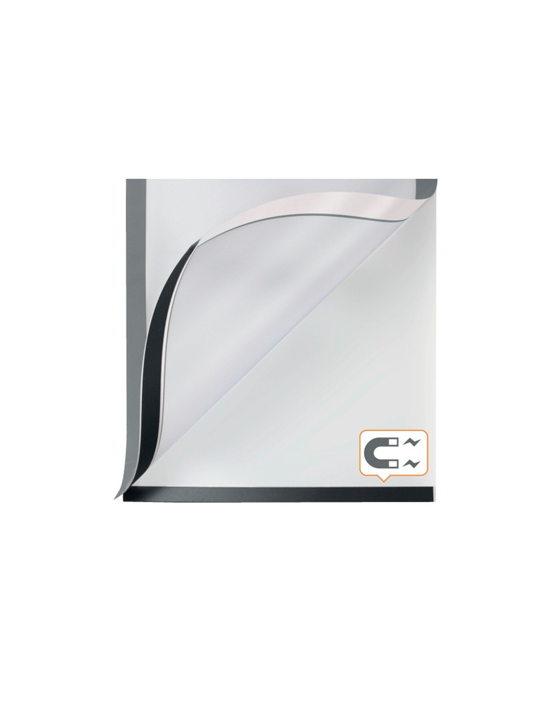 Marco magnético autoadhesivo para la exposición segura de carteles, señales e información. El marco cuenta con una banda magnética en la parte inferior del marco que permite cambiar el contenido de forma rápida y sencilla y mantener las páginas seguras. Este marco magnético se fija firmemente a superficies planas en formato vertical u horizontal gracias a su base autoadhesiva, y la tapa mate transparente ayuda a proteger el contenido que hay debajo y se puede limpiar con un paño. Área de exposición A4. Pack de 2 marcos informativos de color plata.