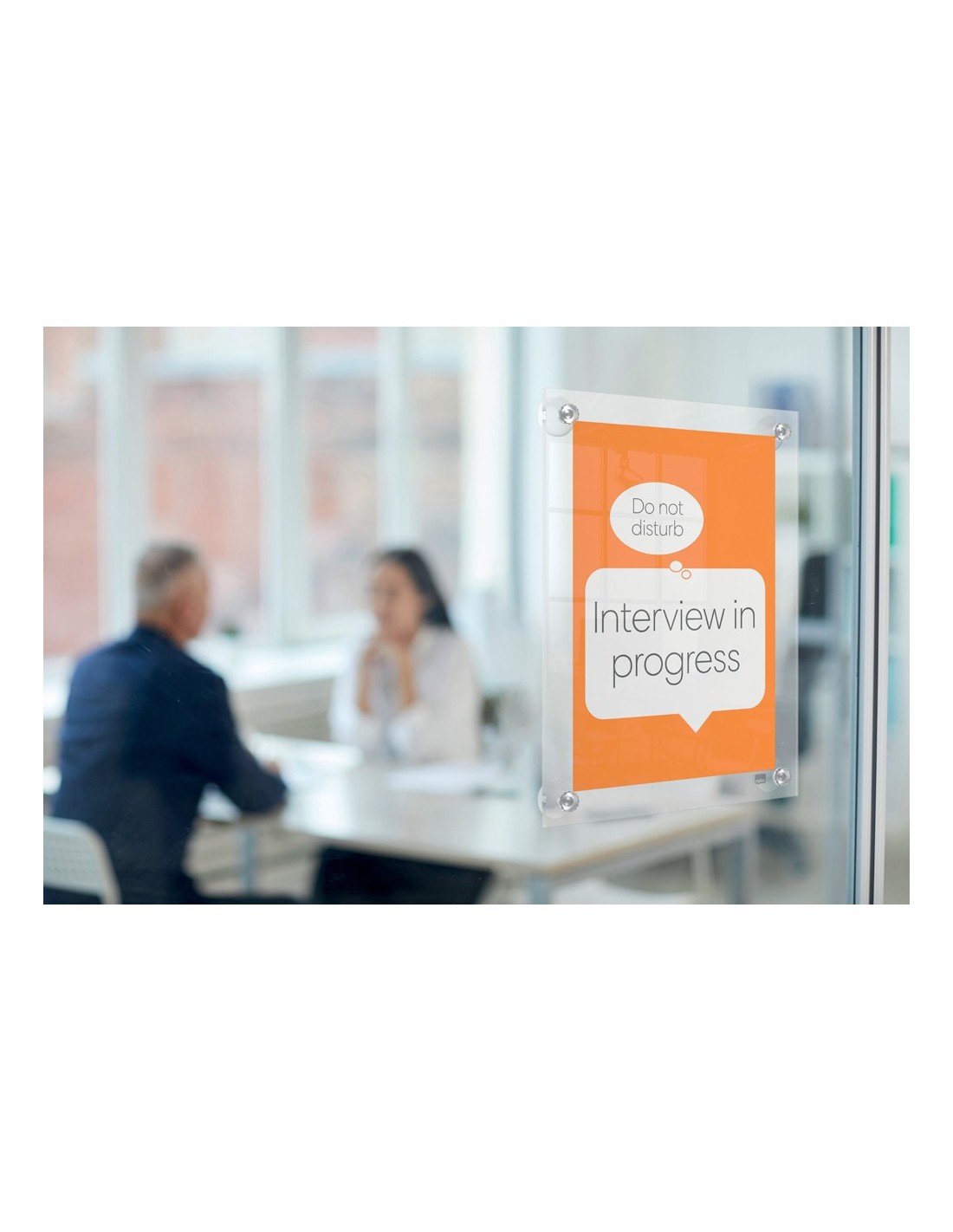 Este porta póster acrílico montable y fácil de mover, con un moderno diseño sin marco, proporciona una sensación elegante y contemporánea. Gracias asu montaje con ventosas, el porta póster se adhiere a cualquier superfici e no porosa en formato vertical u horizontal y ofrece un cambio de contenido rápido y sencillo. La superficie transparente se puede limpiar fácilmente, lo que convierte a este soporte en la solución ideal para la exposición de carteles, documentos o información temporal y permanente. Tamaño de la superficie de exposición: Din A4.