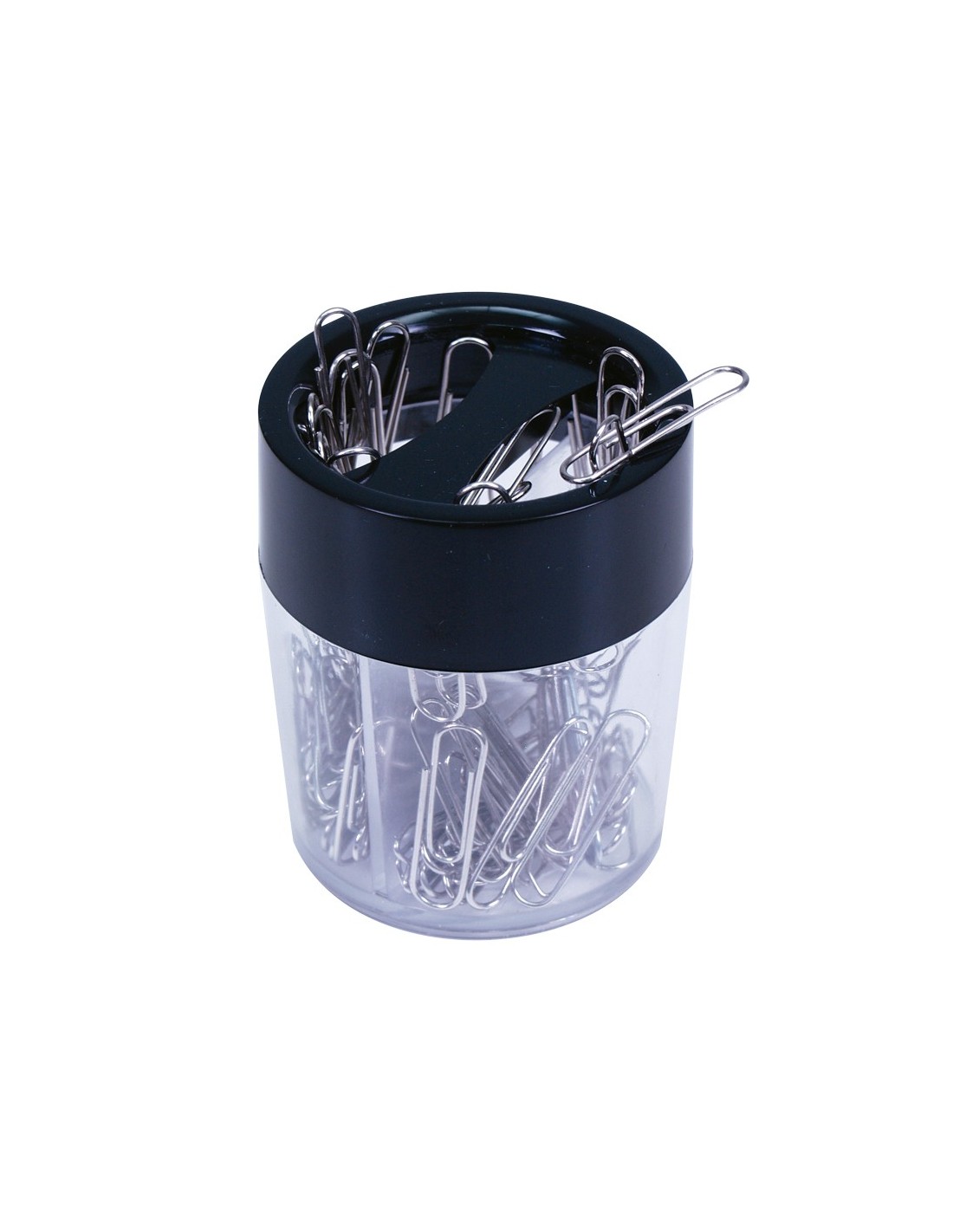 Forma redonda. Imantado. Depósito transparente con 2 departamentos. Ideal para separar clips de distintos tamaños, color, forma Contiene clips. Medidas: Ø 60,4 x 72,5 mm.