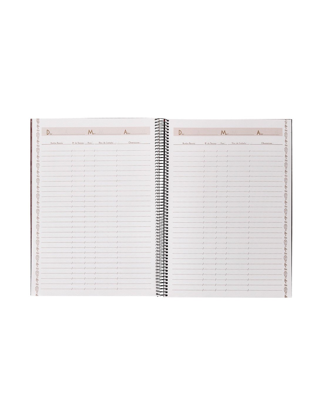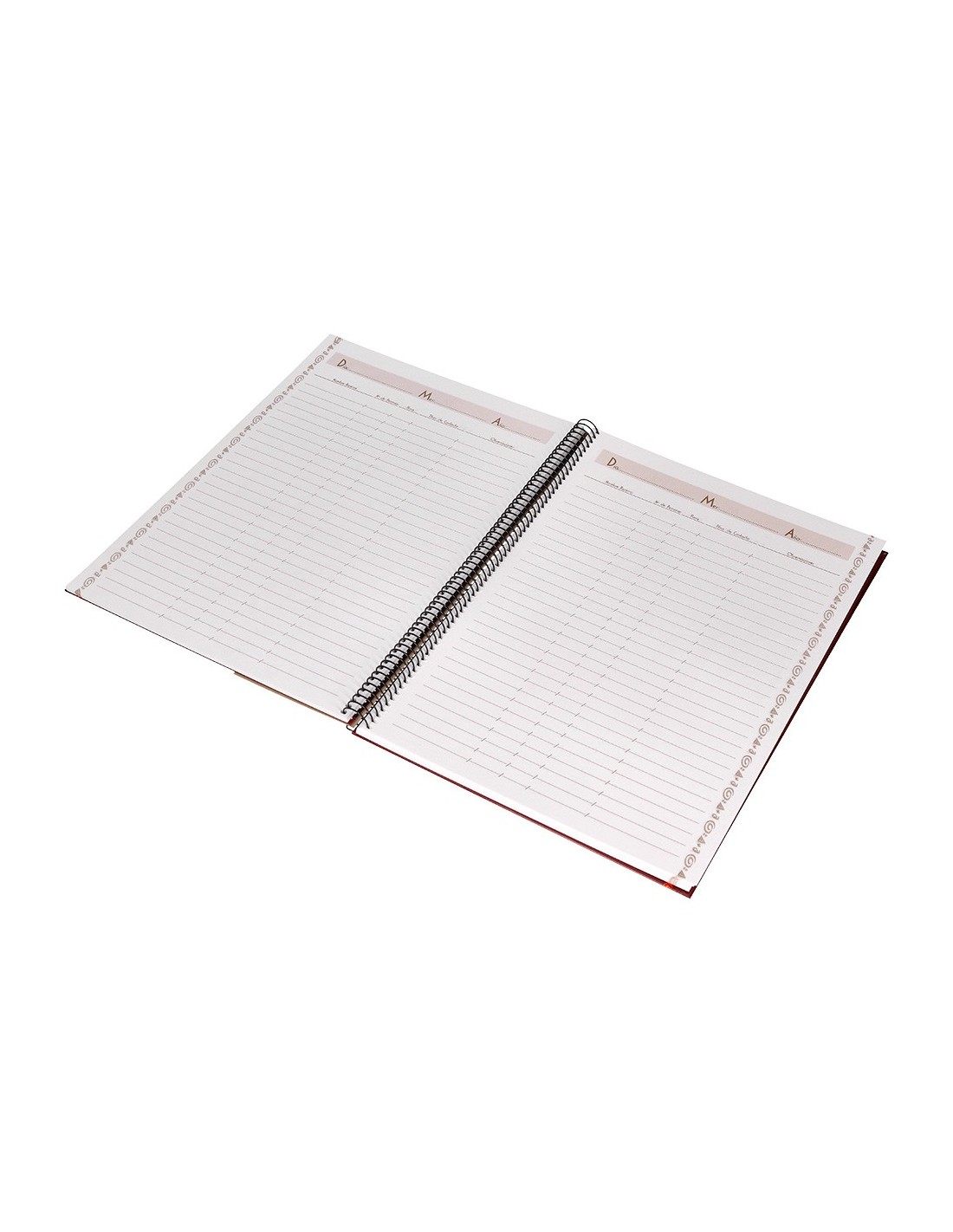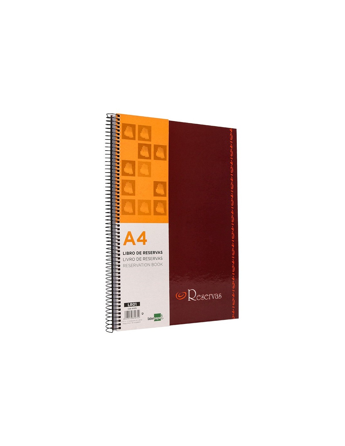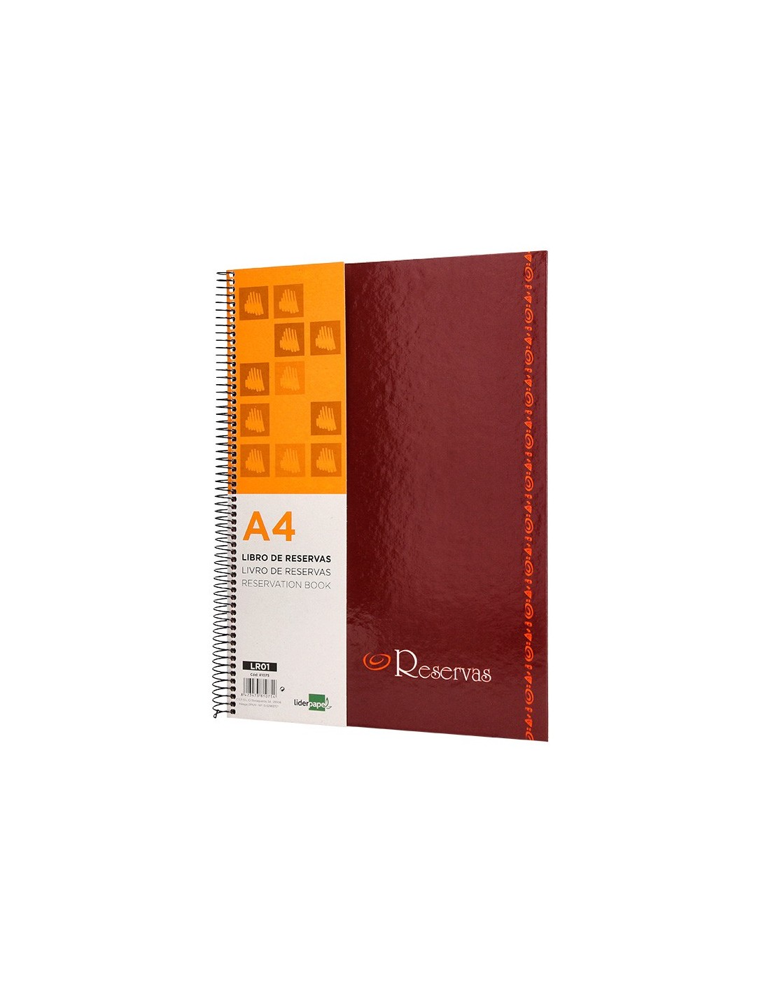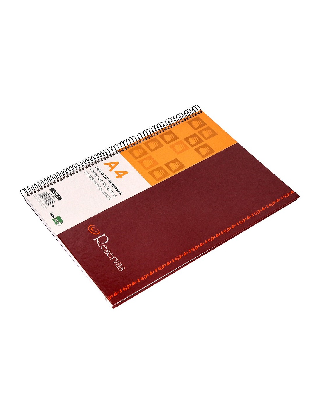 Tapa forrada en cartón de 1,5 mm de espesor. Papel estucado brillo de 115 g/m². Ideal para todo tipo de establecimientos que requieran de cita previa o reserva. Tapa dura. Espiral. 80 hojas. Formato DIN A4. Medidas: 210 x 297 mm.