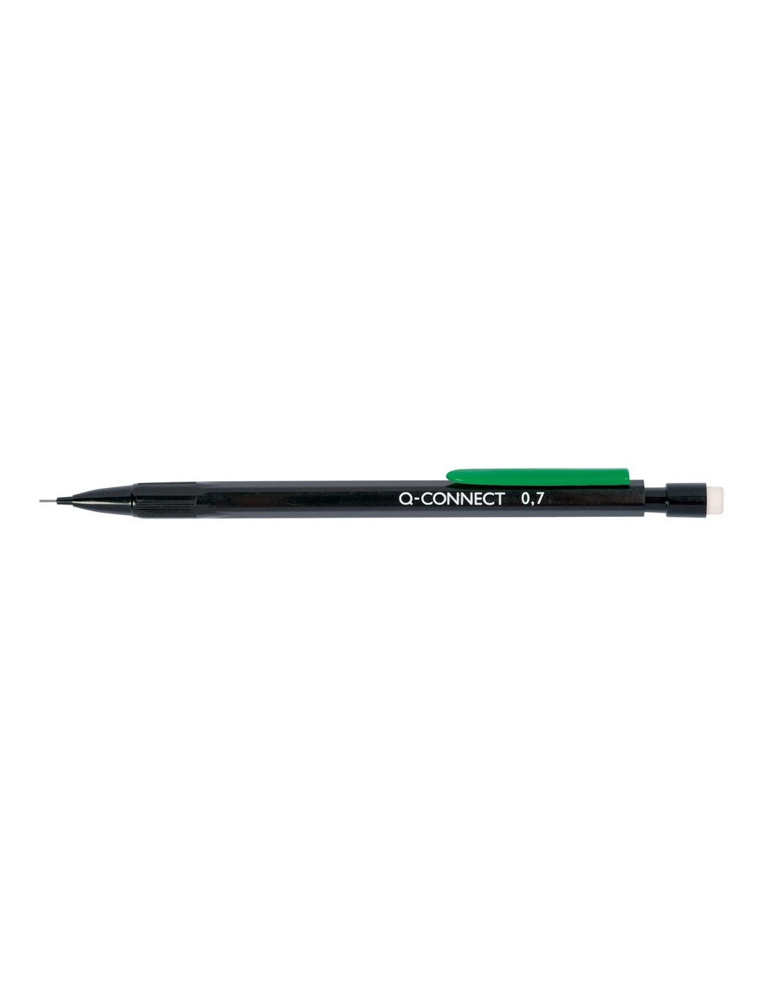 PORTAMINAS Q-CONNECT 0.7 MM CON 3 MINAS CUERPO NEGRO CON CLIP VERDE