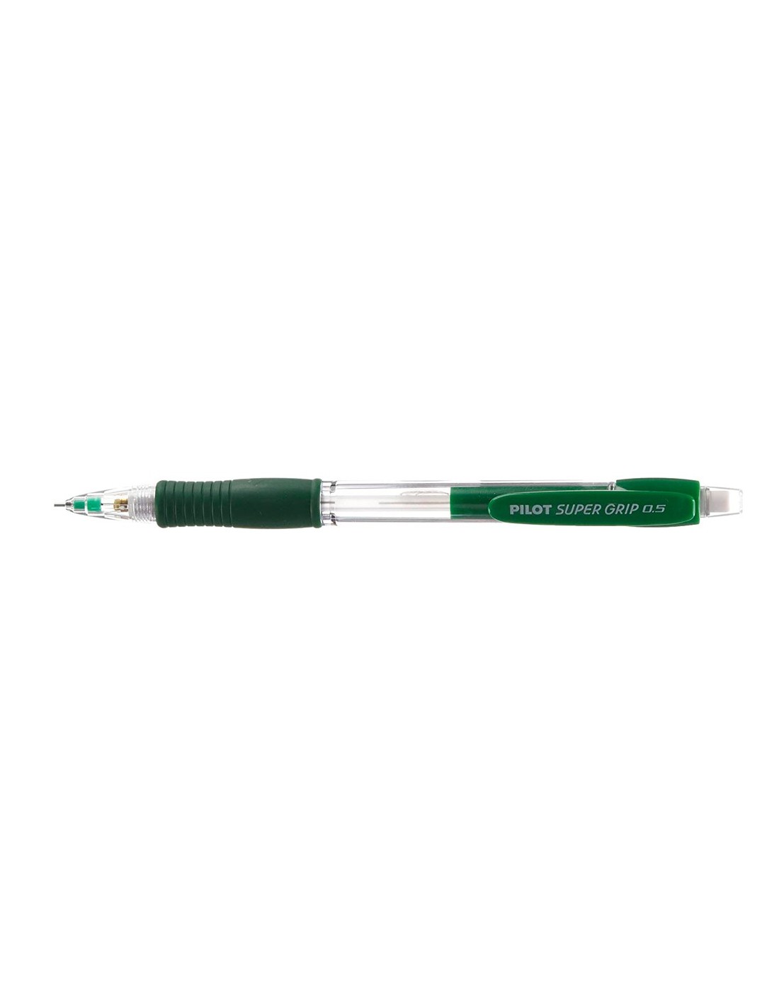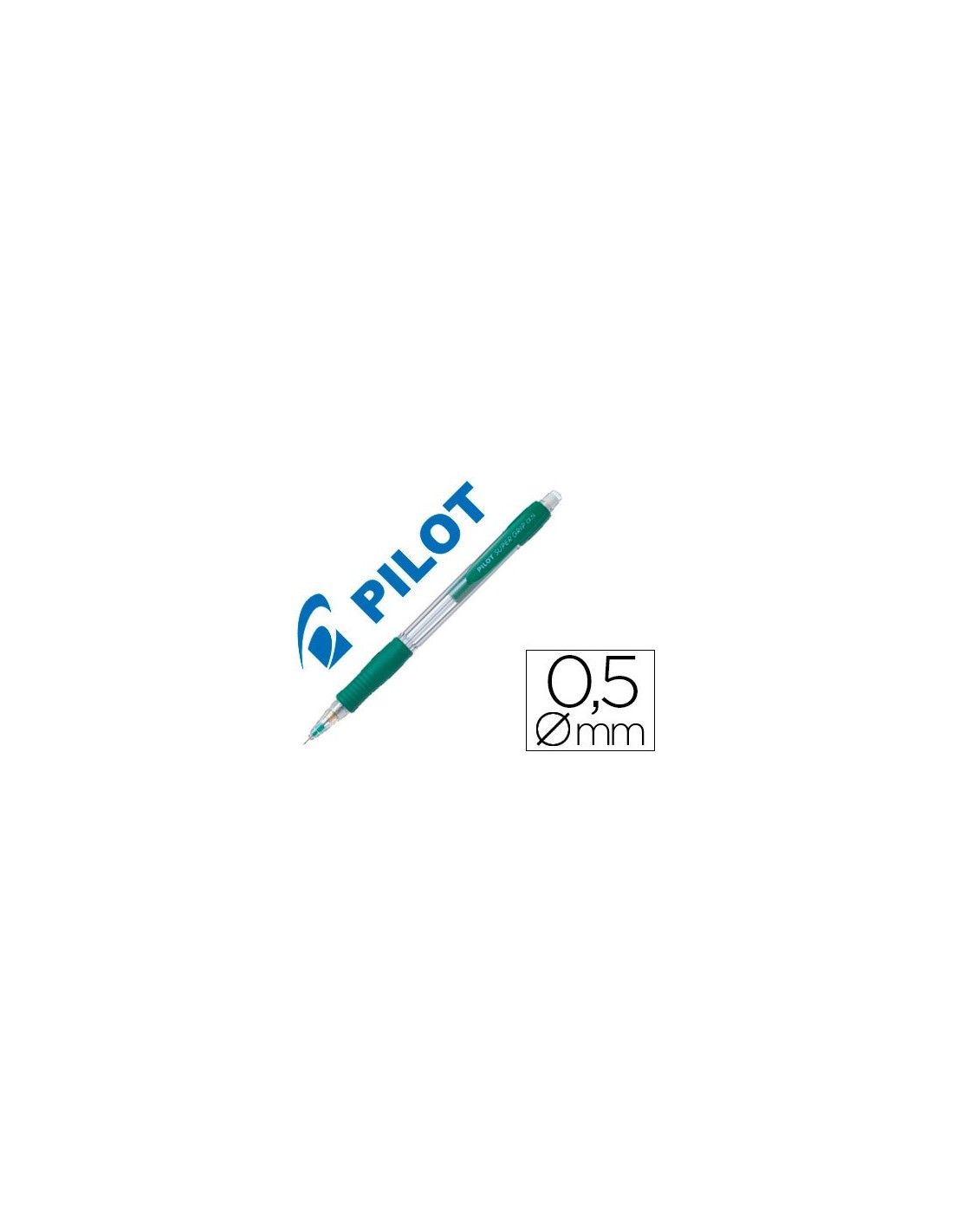Portaminas de plástico con cuerpo transparente de diferentes colores. Sujeción de caucho. Con goma en el pulsador. Clip de plástico. Minas de 0,5 mm incluidas.