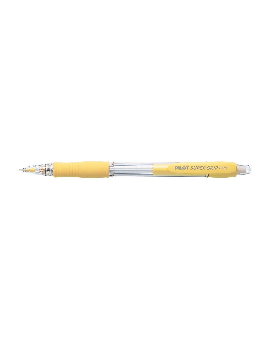 Portaminas de plástico con cuerpo transparente de diferentes colores. Sujeción de caucho. Con goma en el pulsador. Clip de plástico. Minas de 0,5 mm incluidas.