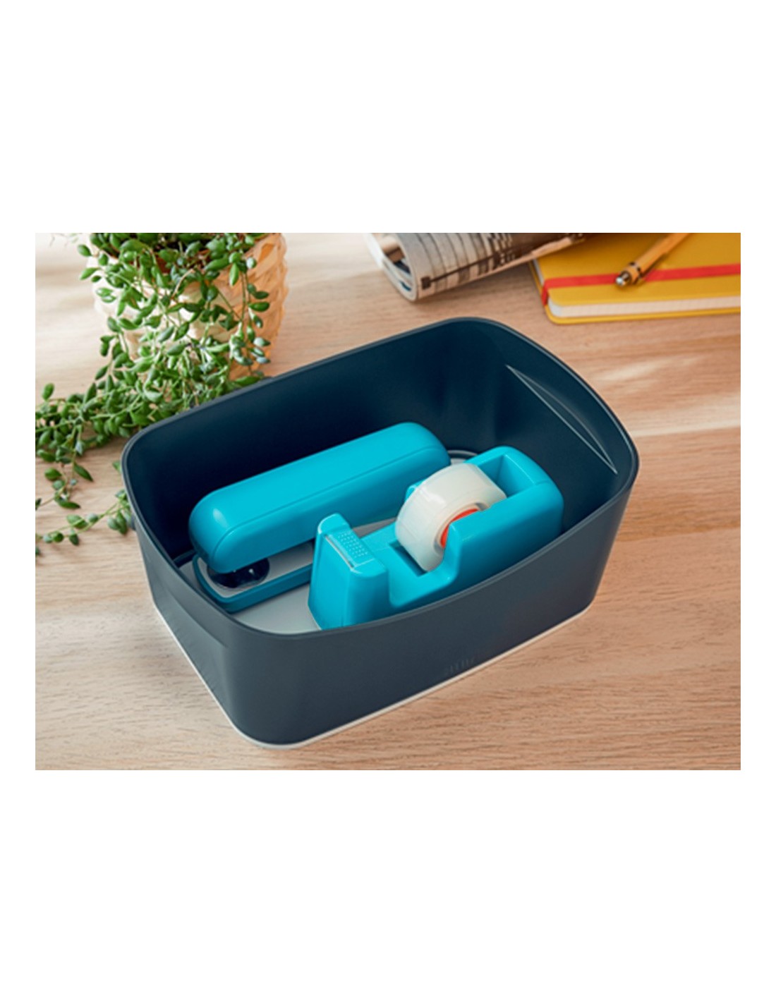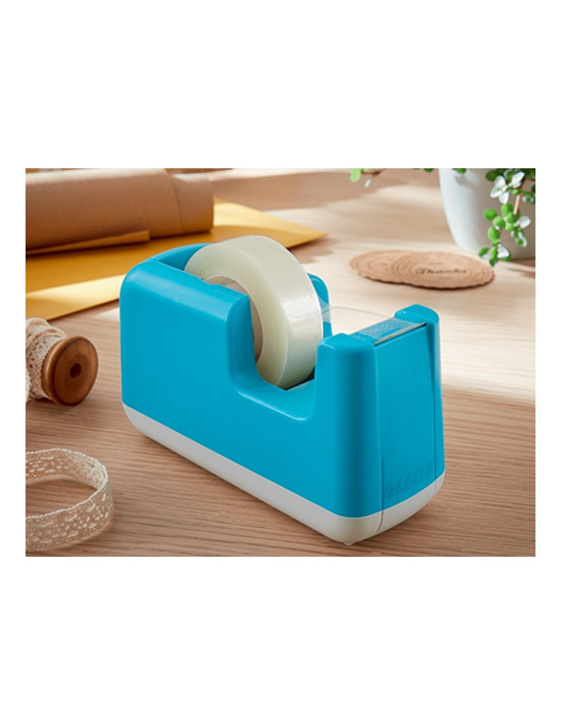Dispensador de cinta con acabado mate. Compatible con rollos de cinta de hasta 19 mm de ancho y 33 m de largo para uso en casa y en la oficina. Asegura que la cinta adhesiva sea de fácil acceso, sencilla y rápida de reemplazar en cualquier momento. Incluye una cinta adhesiva. Medidas: 75 x 56 x 135 mm.