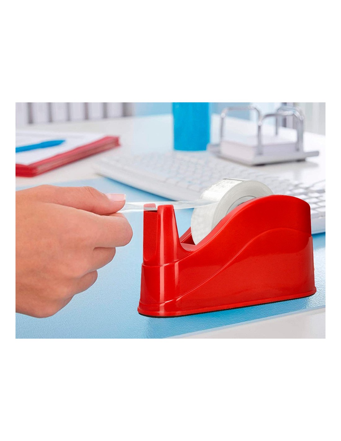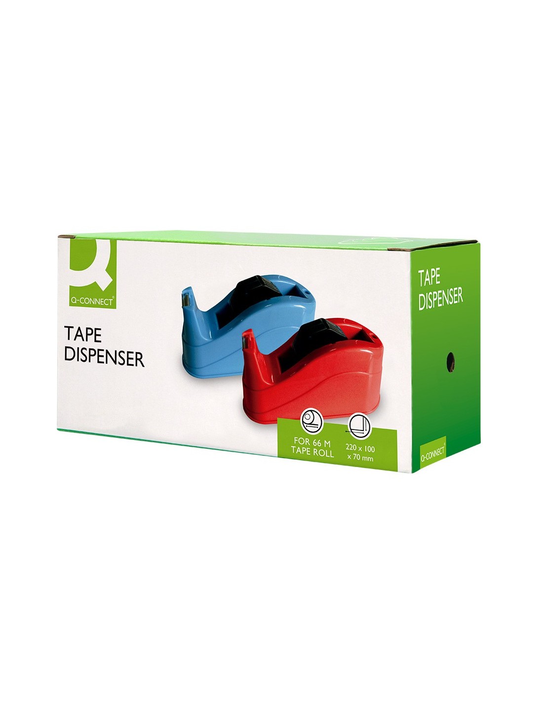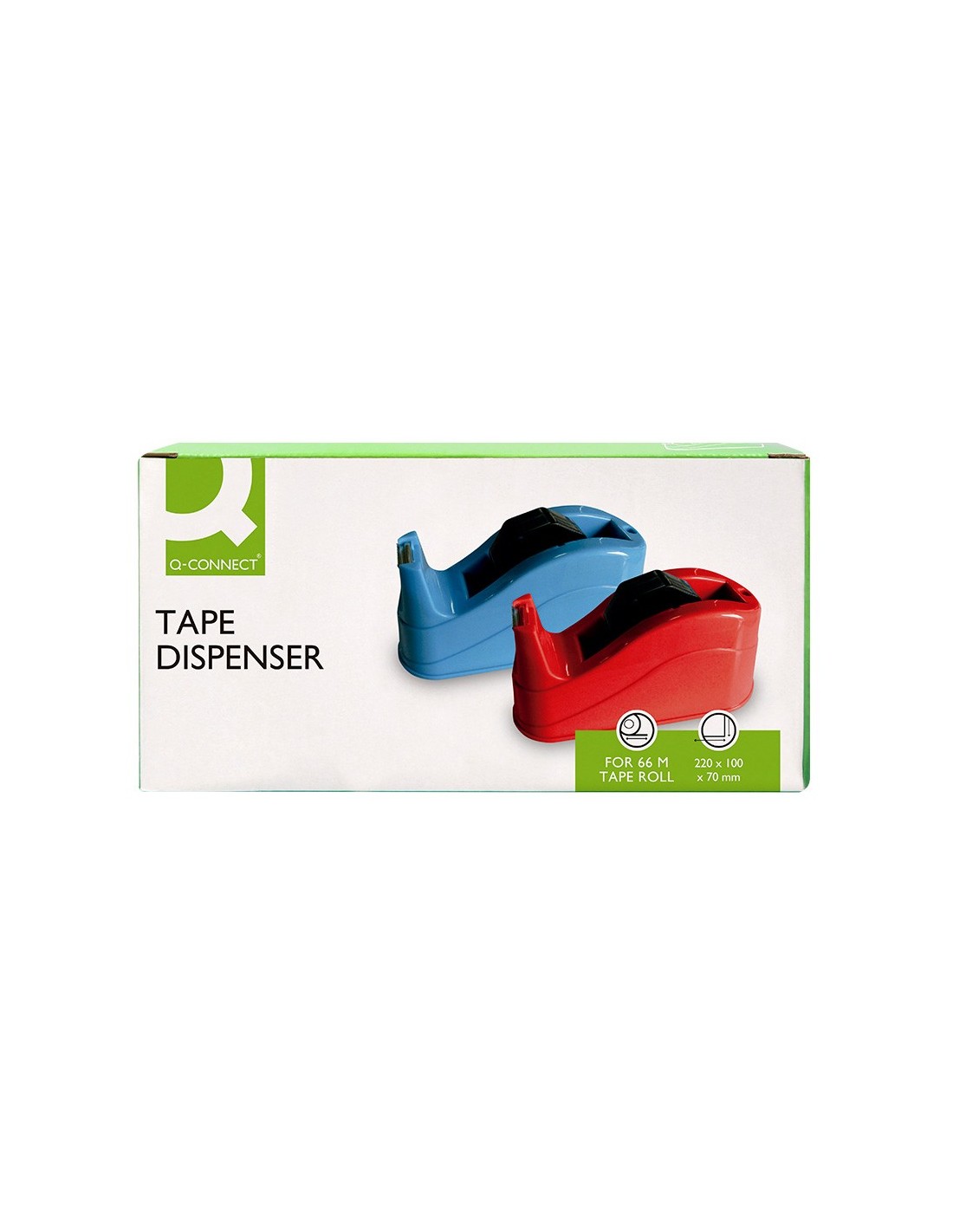 Portarrollos fabricado en plástico. Para cintas de hasta 66 m. Base antideslizante. Ideal para uso intensivo. No incluye cinta. Medidas: 220 x 70 x 100 mm. Peso 1,5 kg.