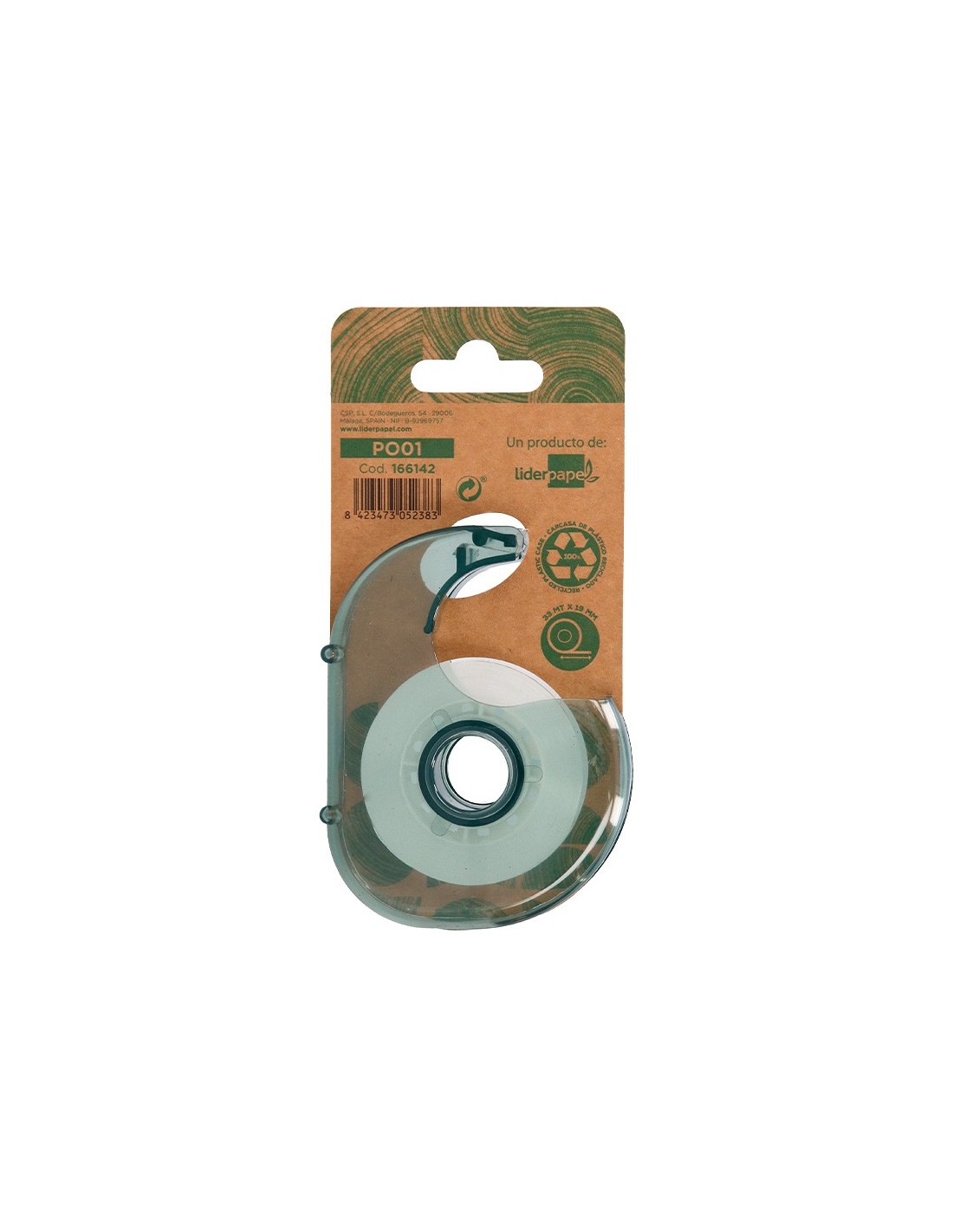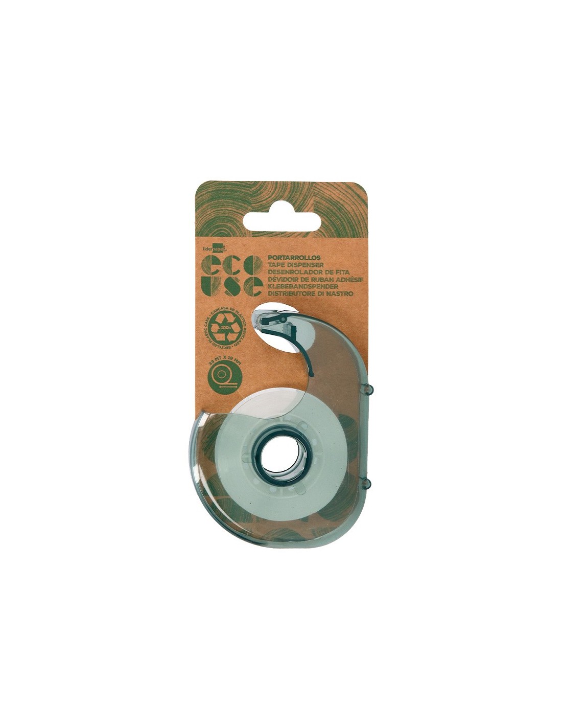 Miniportarrollo Liderpapel Ecouse 100% plastico reciclado. Incluye cinta adhesiva de 33 x 19 mm. Presentación en blister eco.