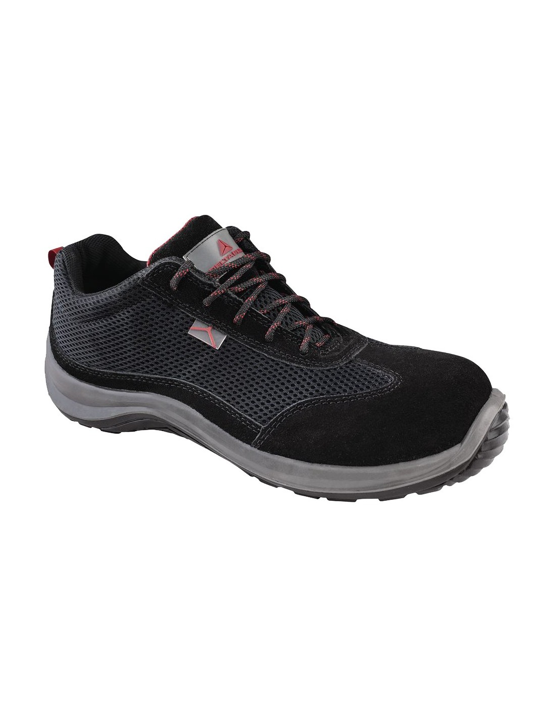 Calzado de piel serraje afelpado y malla aireada. Caña: piel serraje afelpado y poliéster estilo «mesh» (malla aireada). Forro: poliéster. Plantilla interior: amovible preformada en poliéster sobre EVA. Suela: inyectada - PU bidensidad. Suela Pu de doble densidad: amortiguación contra impactos reforzada. Gran resistencia a la abrasión. Puntera de composite 200 j, con mayor ligereza y menor cansancio. No conductor de calor ni frío. Suela composite antiperforación. Uso profesional. Antiestático y antideslizante. No magnético. Color negro. HOMOLOGADO EN NORMA EN ISO 20345: S1P-FO-A-E-SR.