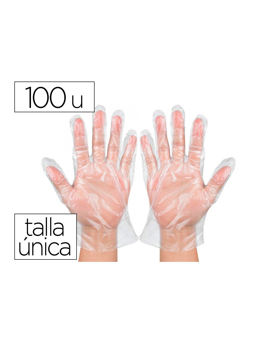 Guante de plástico higiénico desechable de un solo uso. Talla única. Caja de 100 unidades.
