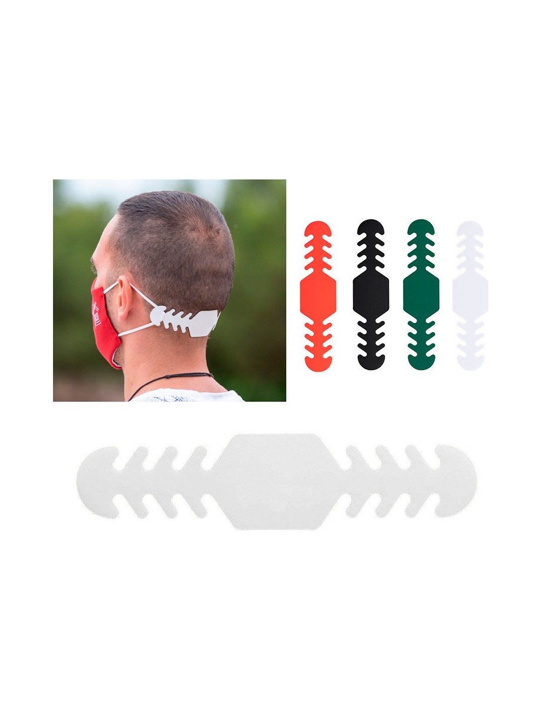 Confortable ajustador flexible para mascarilla, en resistente y suave silicona. Fácil de desinfectar después de cada uso, con 3 posiciones de ajuste. Presentado en bolsita individual. Medidas: 194 x 18 x 2 mm.
