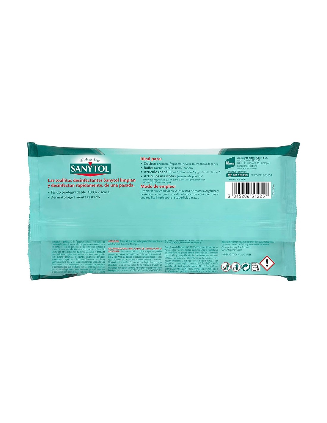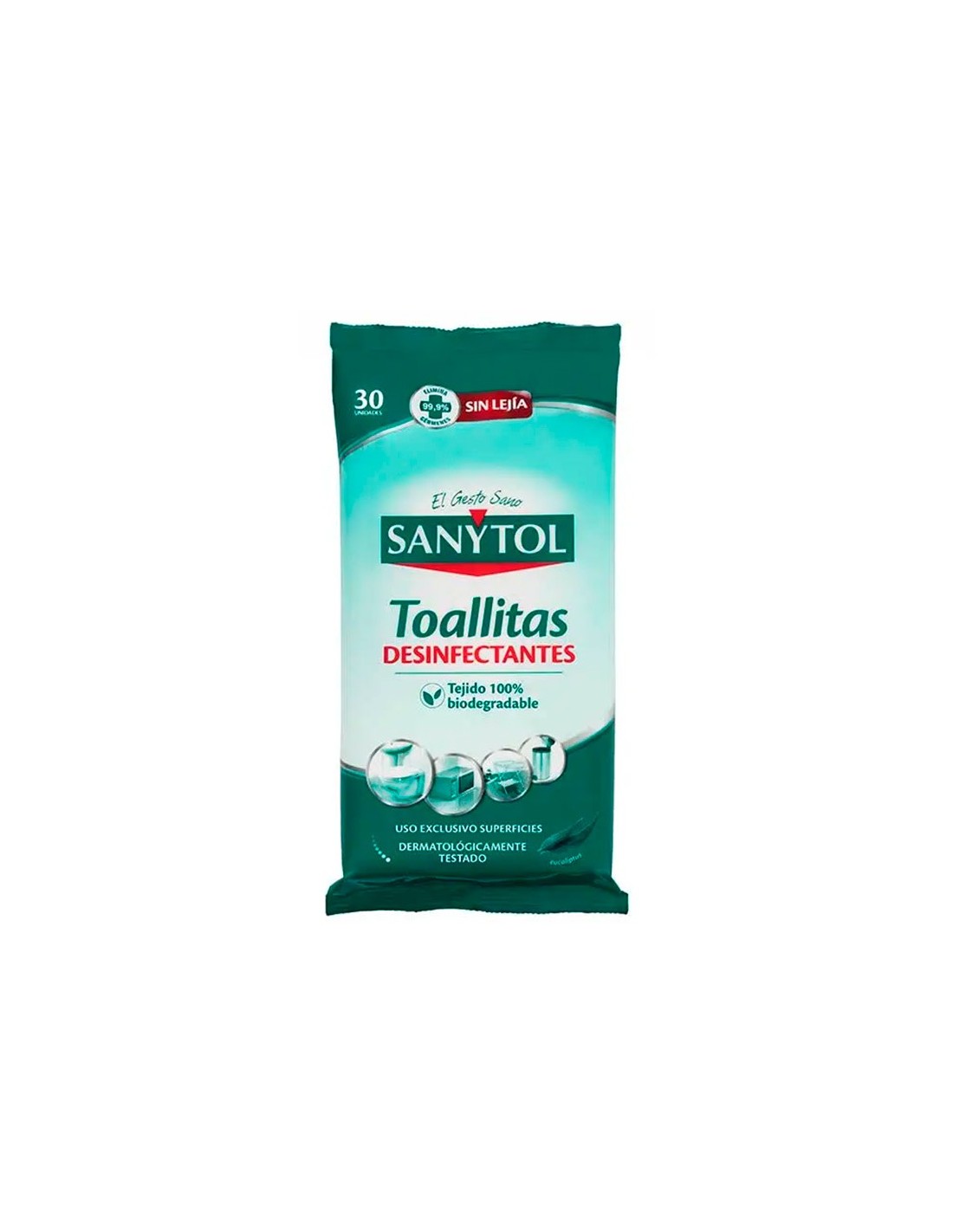 Toallitas desinfectantes multisuperficies que eliminan el 99,9% de los gérmenes de forma rápida y cómoda. Eficaz contra bacterias y hongos más comunes del hogar. Aroma de eucaliptus. No mancha ni daña las superficies delicadas como la madera o el mármol. Toallitas biodegradables. Dermatológicamente testado. El paquete de 30 toallitas.