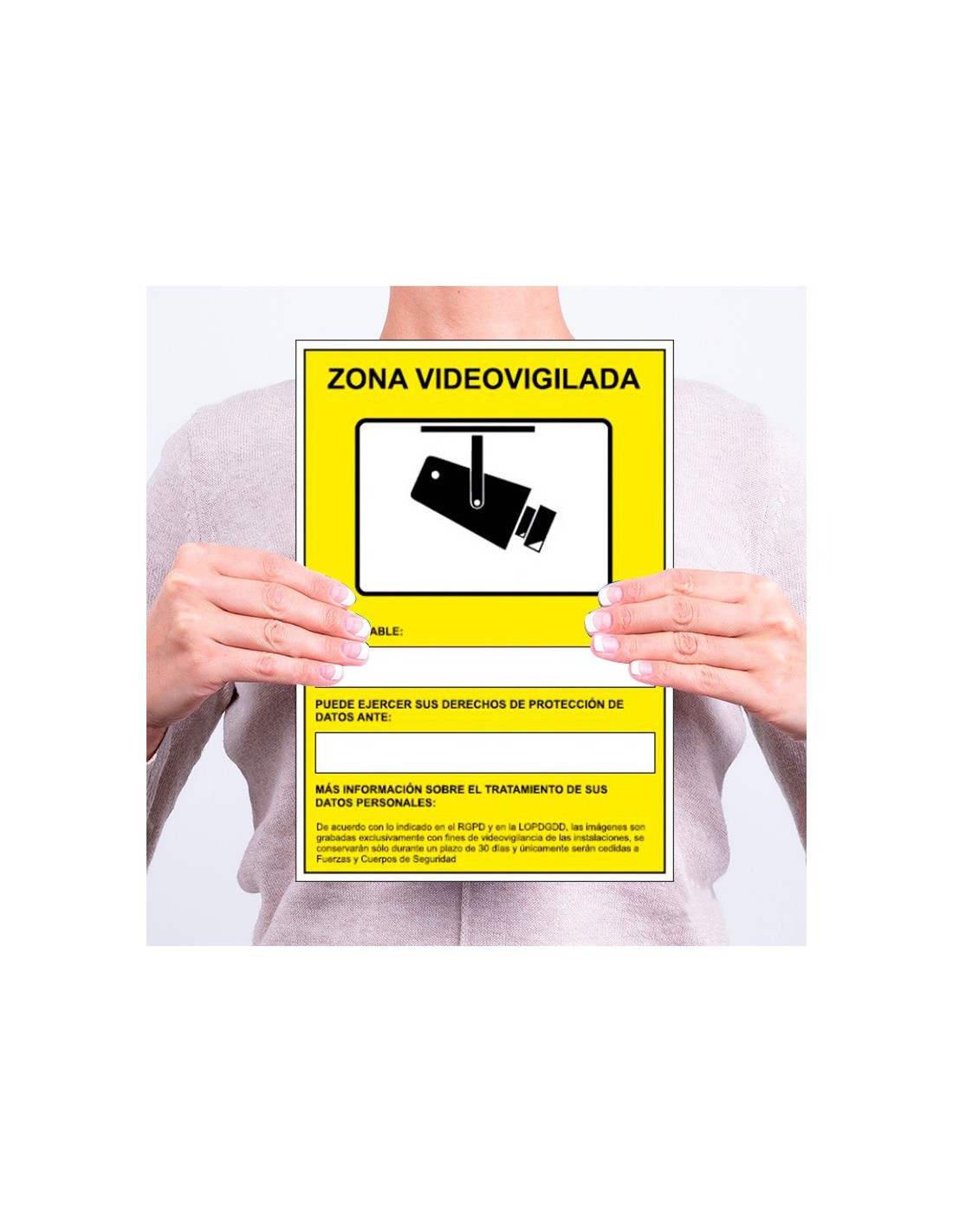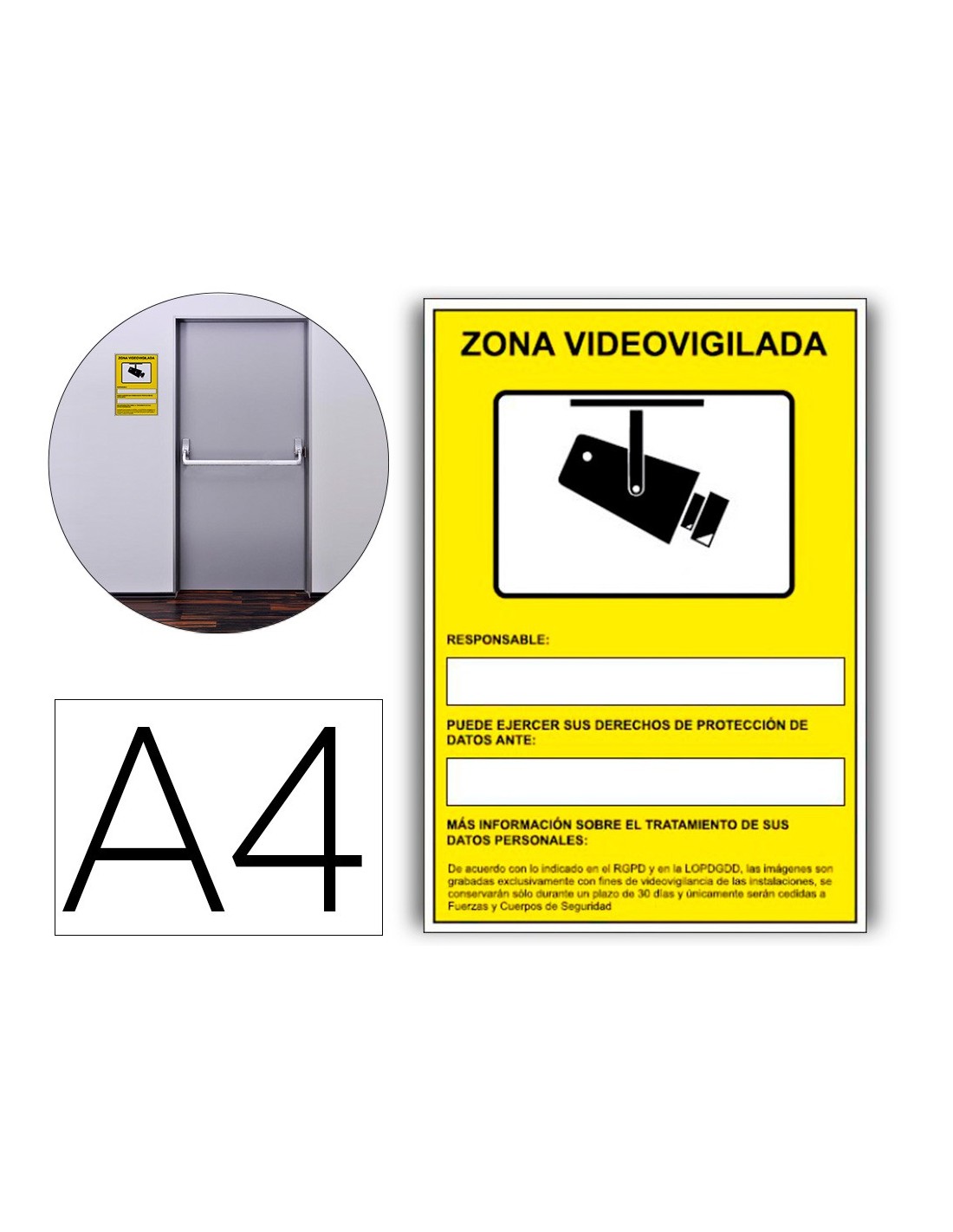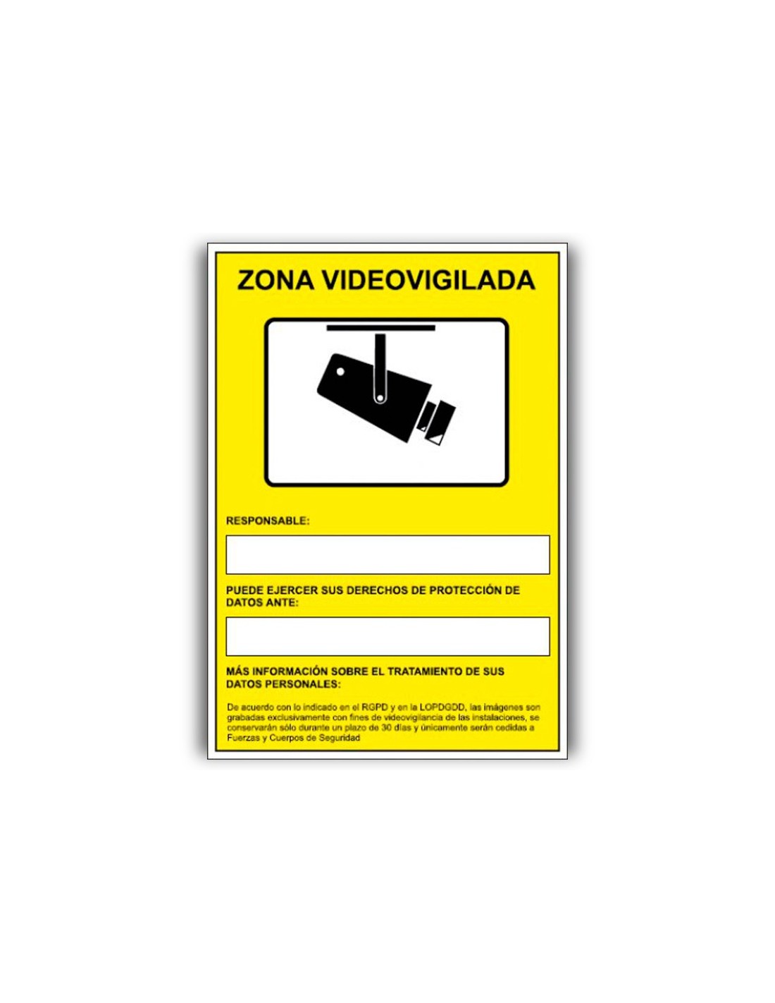 Señal de aviso \"Cámaras de vigilancia en grabación las 24 horas Archivo 2000. Fabricada en polipropileno de 700 micras de espesor. Serigrafiada a 2 tintas. Medidas exteriores: 210x297 mm.
